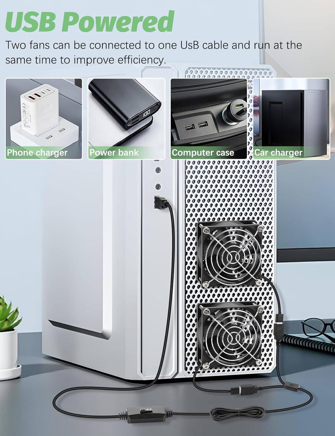 - USB Fan for Cooling: This small USB fan easily gets power from many places: plug it into a USB charger, power bank, phone charger, game console, or any USB port. It's very easy to use