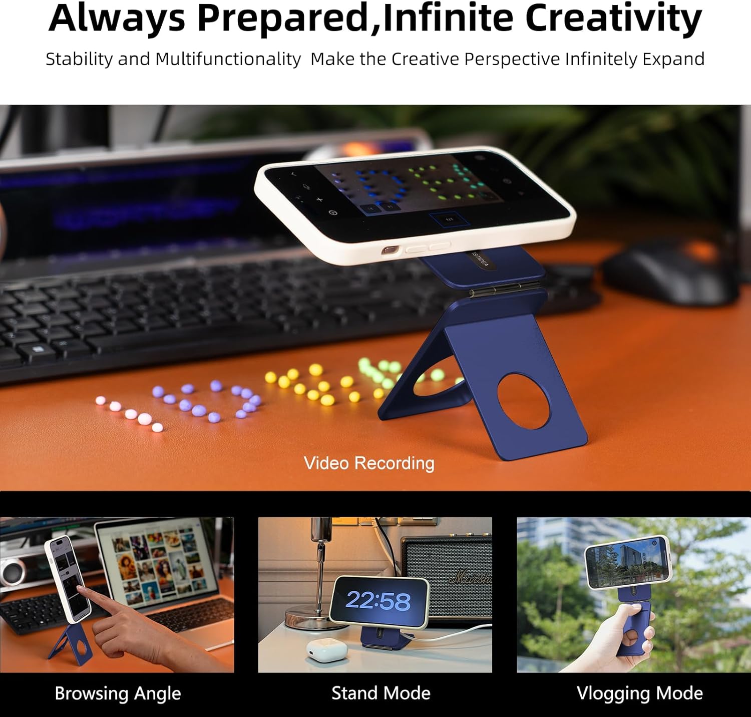 - Strong Magnetic Wireless Charger stand: The phone tripod has built-in strong magnets. Mag-safe phone stand compatible with the Original Mag-Safe Charger. Super magnetic properties can improve wireless charging efficiency. Mag-safe charger is also quite easy to attach and detach your phone from the mag charging stand