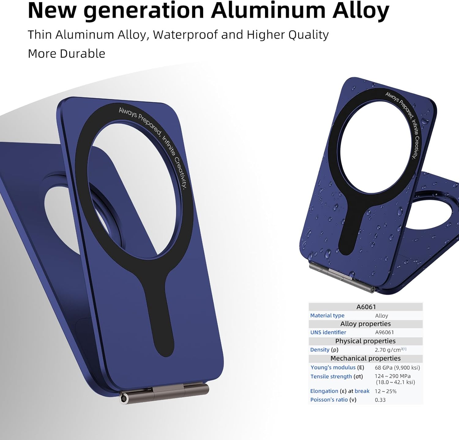 Phone Tripod Stand, Aluminum Alloy Mini Tripod Compatible with Magsafe iPhone 16/15/14/13/12 Series, Foldable Strong Magnetic Phone Stand, Mult-Angle Adjustment Selfie Stick (Navy Blue)