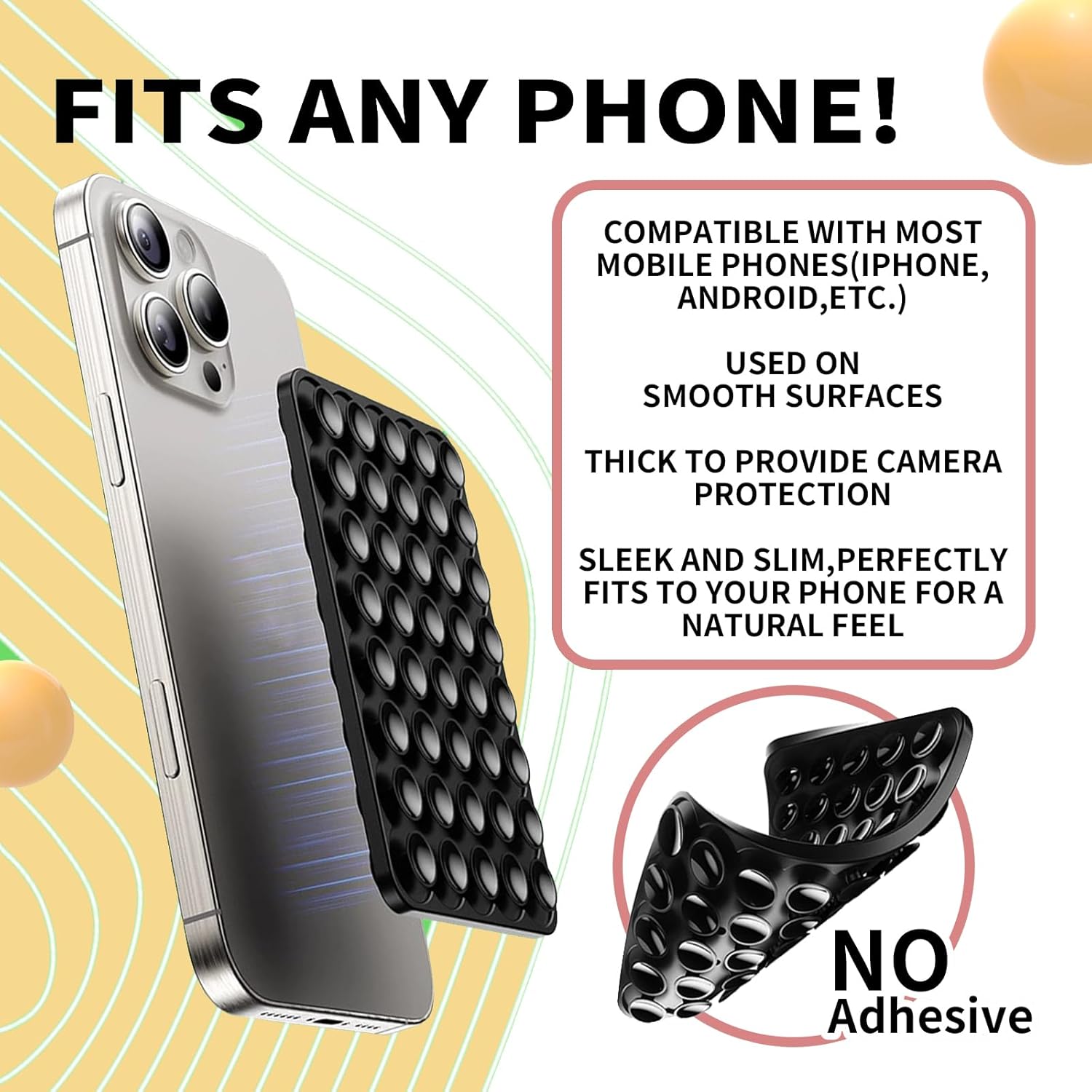 - Superior Grip and Stability: The Octo buddy phone sticky grip features a robust suction cup phone mount that ensures your device stays securely in place, whether you're taking selfies or recording videos. Enjoy hands-free convenience without the worry of your phone slipping!
