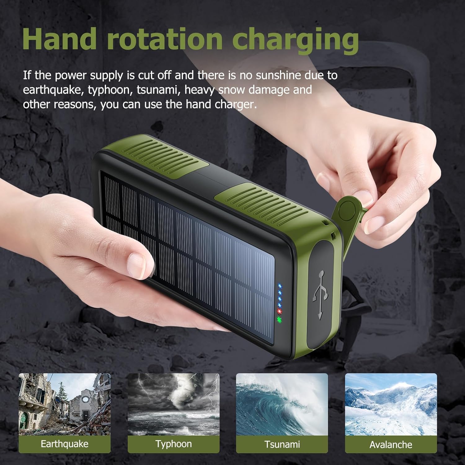 - 【Hand Crank & Solar Charging 2-in-1 Solar Power Bank】: With dual input ports (high speed Type-C and Micro ), the solar power bank can be fully charged by 9-12 hours. The mobile power supply adopts a hand-crank charging design. no sunlight, artificial power generation can be used to play an emergency role. (Kindly Note: Hand Crank & Solar charging is for emergency use, do not take solar power as a primary charging source. It is highly recommend you fully charge via wall charger on first use)