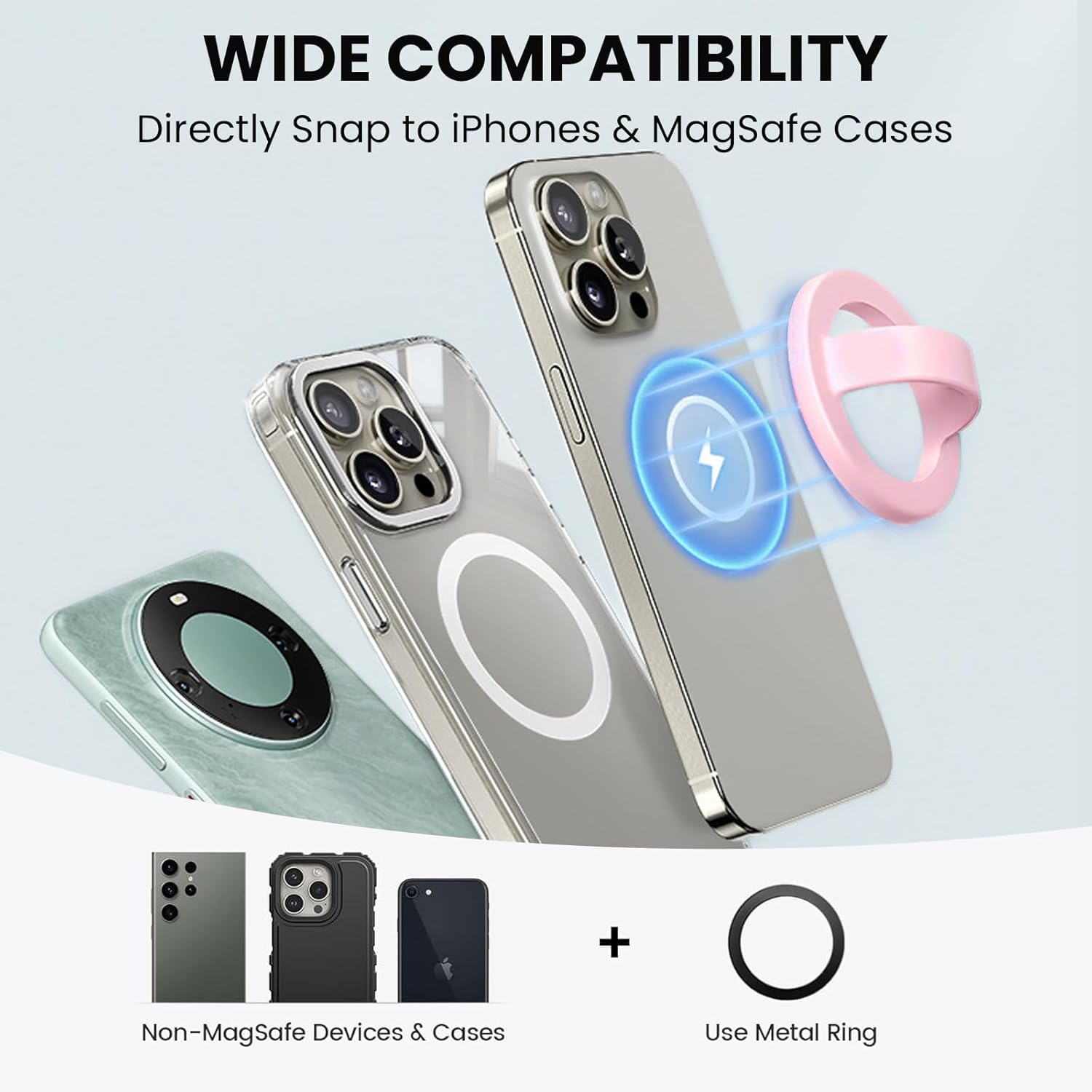 - Wide Compatibility:Compatible with iPhone 16/15/14/13/12 series and Masafe magnetic cases,but also we provide an additional metal ring for other phones or phone case to connect our comfy loop phone holder
