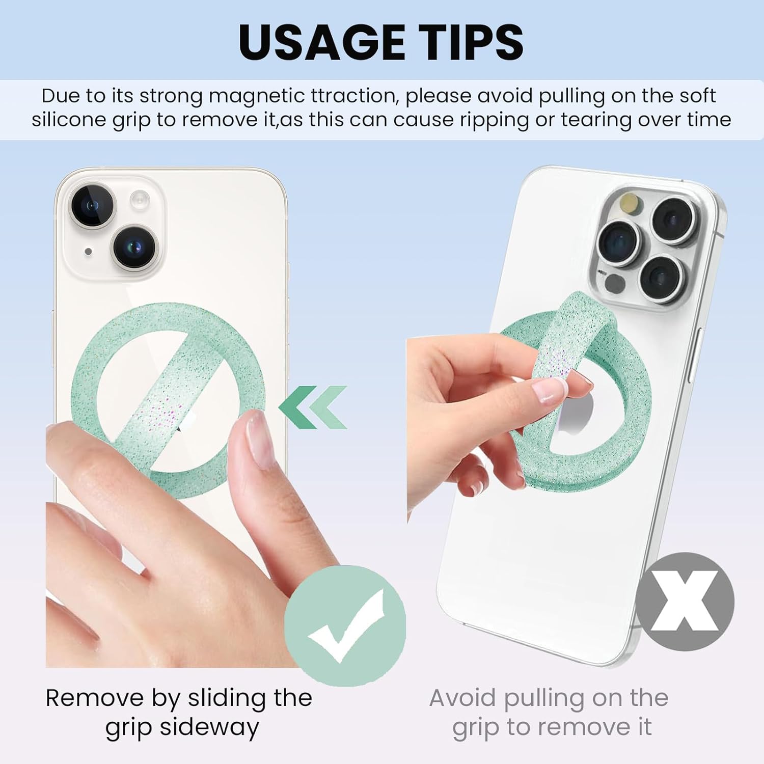 - Package includes: Magnetic Silicone Phone Grip + Metal Ring