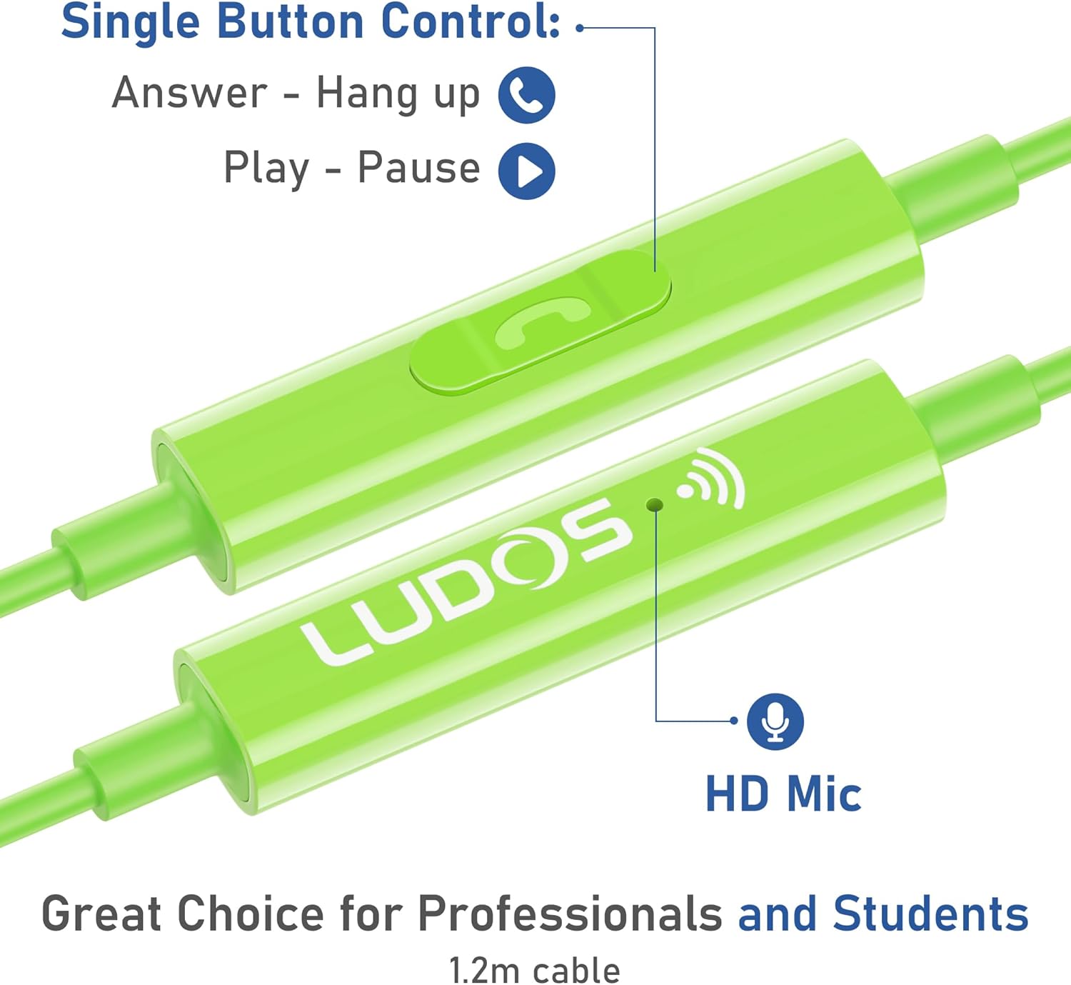 LUDOS OMNITONE Wired Earbuds in-Ear Headphones, 5 Years Warranty, Earphones with Microphone, 3.5 mm Jack Corded Ear Buds, Videoconference for iPhone, Samsung, Laptop, Kids, School Students - Green
