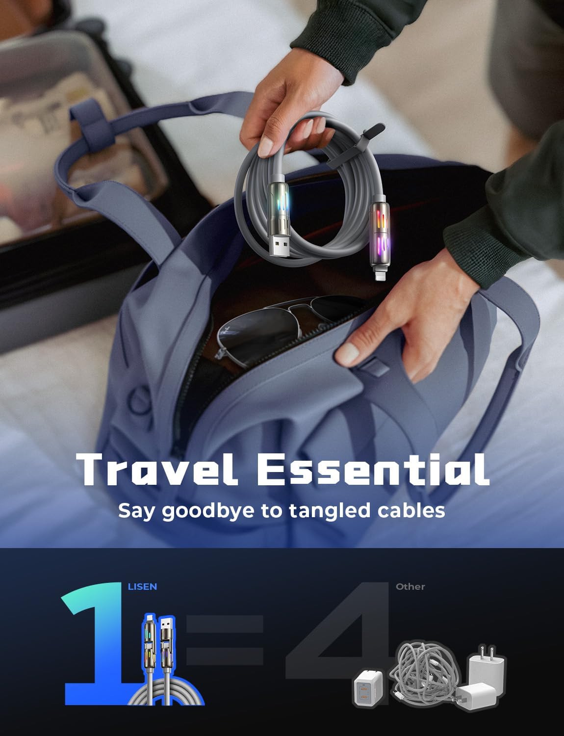 - [What You Get] LISEN 3.3FT 240W 4-in-1 Multi Charging Cable, a length suitable for any situation, so you no longer need to stay near a power outlet. Additionally, our reliable customer service is available 24/7—if you have any questions or issues, feel free to contact us. We guarantee resolution within 24 hours. Please note, the 240W Type-C cable can power laptops through the Thunderbolt port, but it is not a USB 3.0/4K cable.