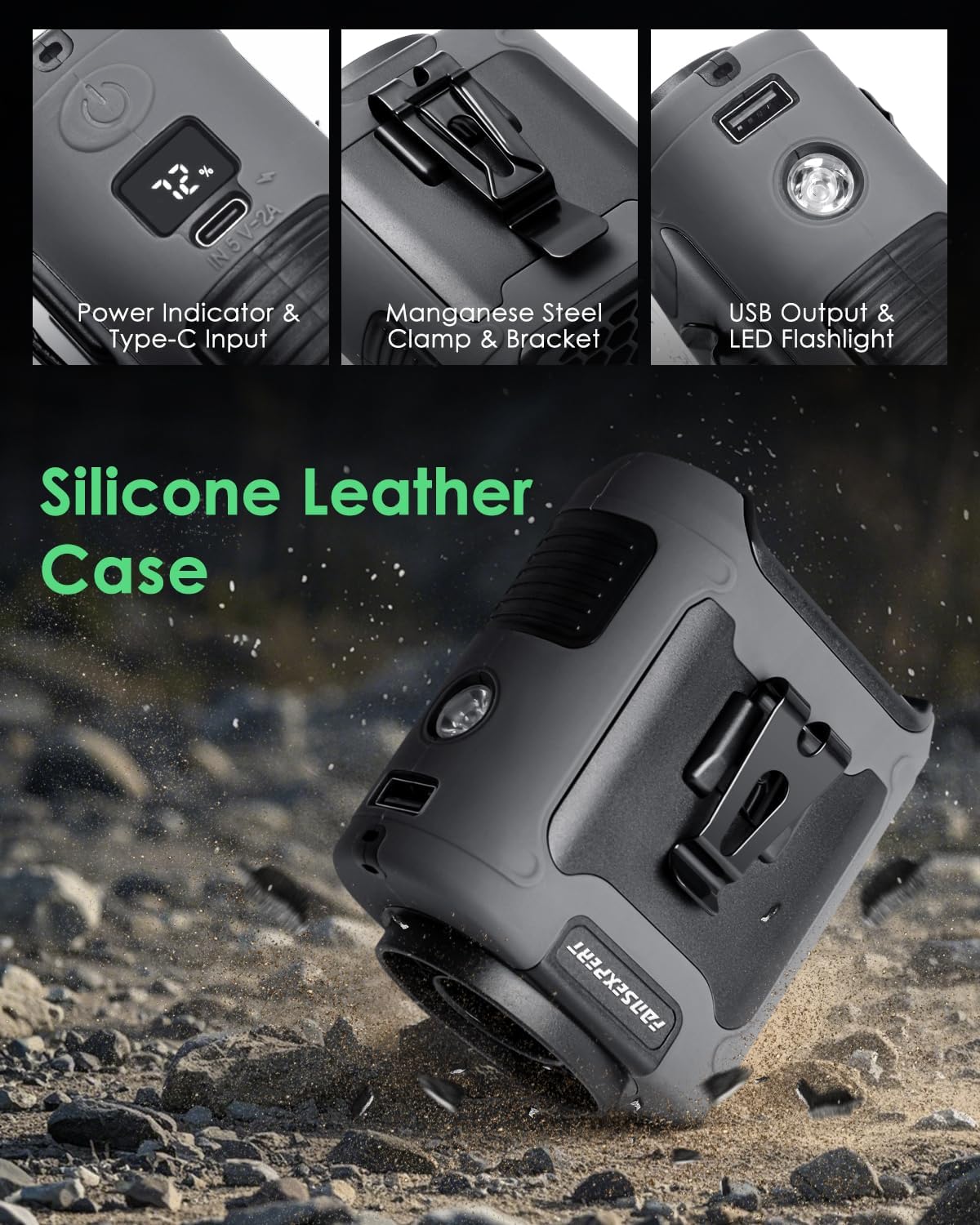 - 【Durable with Anti-Slip Silicone Cover】Designed for outdoor use, this body fan is ideal for workers, farmers, and couriers. The protective silicone cover absorbs impact, preventing damage if dropped. The upgraded manganese steel clip offers a firm grip and enhanced durability, with a dual-clip design for versatile wearing options.