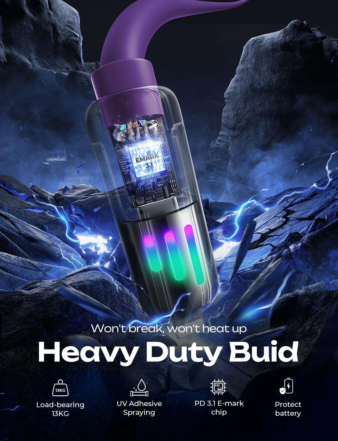 - [PD3.1 Emark Safe Chip & RGB light] The USB C to USB C Cable EMARK3.1 chip not only enables 240W fast charging but also maximizes device safety, ensuring 24-hour constant temperature charging. It automatically stops charging once the device is fully charged, preventing overcharging and battery damage. And RGB lights on both ports will keep changing colours when charging. It is a soft light, not flashing eyes, full of gaming atmosphere.