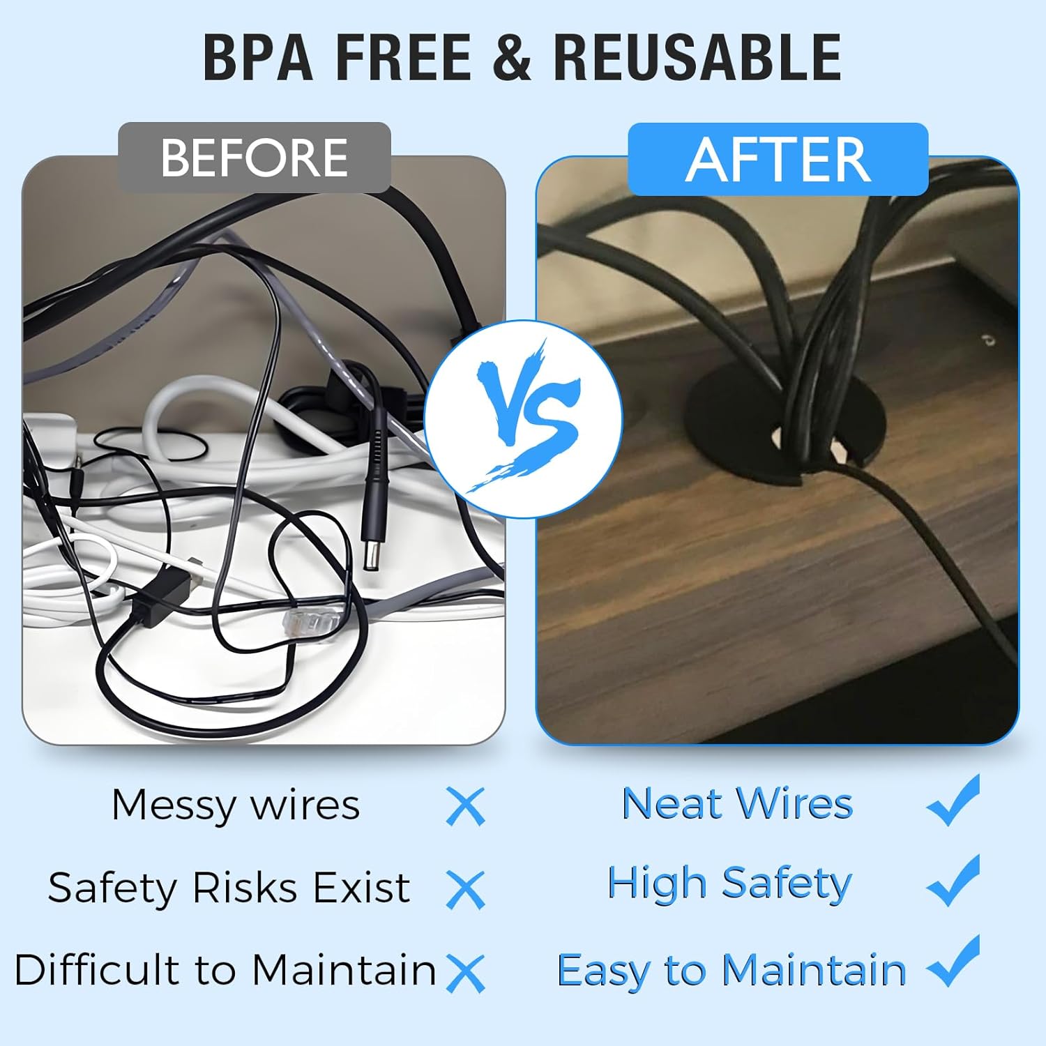 - Maintain Safety: The cord grommet can help to organize the cables on the desktop, which can keep the desktop tidy and improve the work efficiency; Reduces bending and pulling of cables, extends cable life and reduces safety hazards