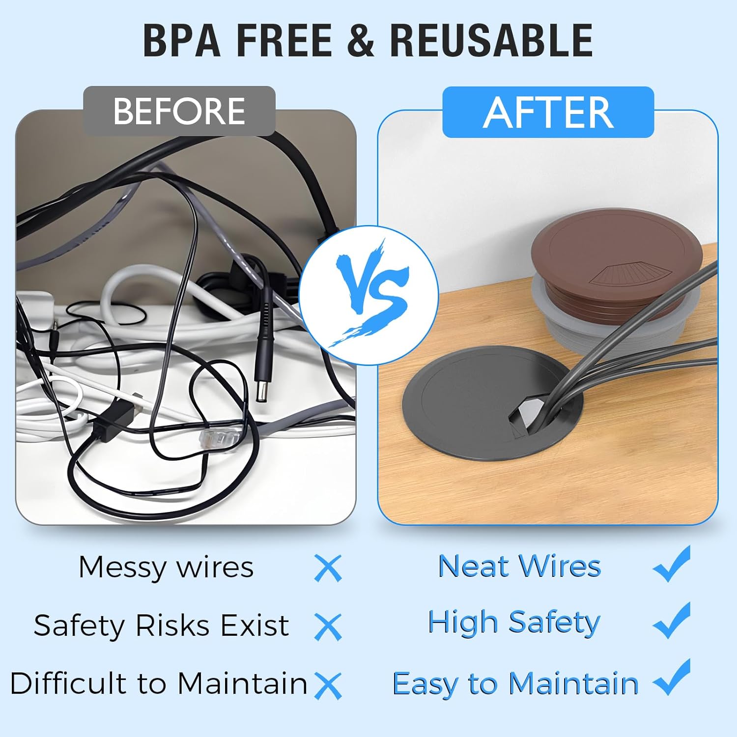 - Wide Applications: The cable hole cover is not only limited to computer countertops, computer components, office desks, office equipment; It is widely used in dressers, lockers, wall cabinets, furniture etc; BOPOREAE furniture hole covert is a great option to manage cables or wires at home, office and school