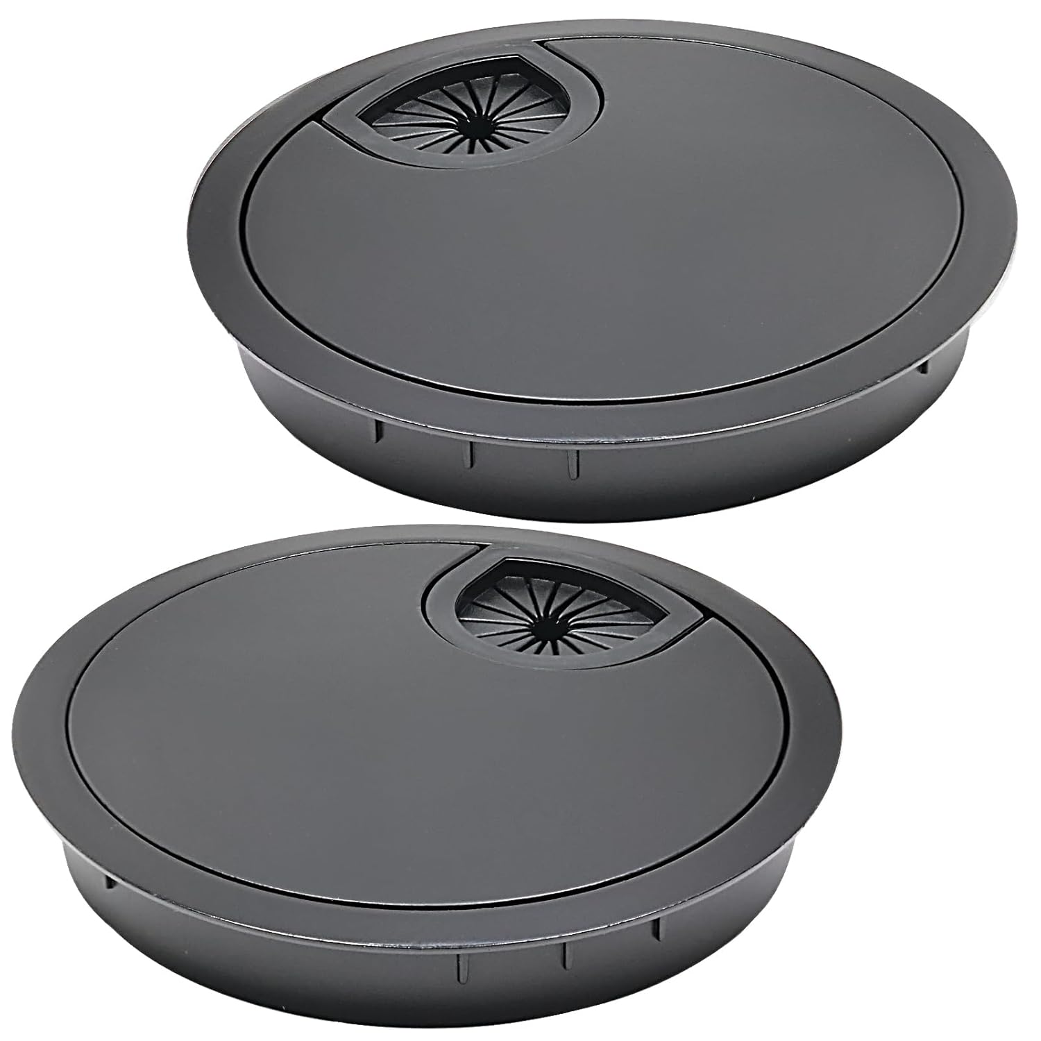 Desk Grommet 2-3/8" (60 mm), Desk Cord Hole Cover, Cable Grommet Metal Zinc Alloy Materilal, Desk Hole Grommet for Office and Home Table Cable, Detachable Cable Cord Organizer (Flat Black 2 Pcs)