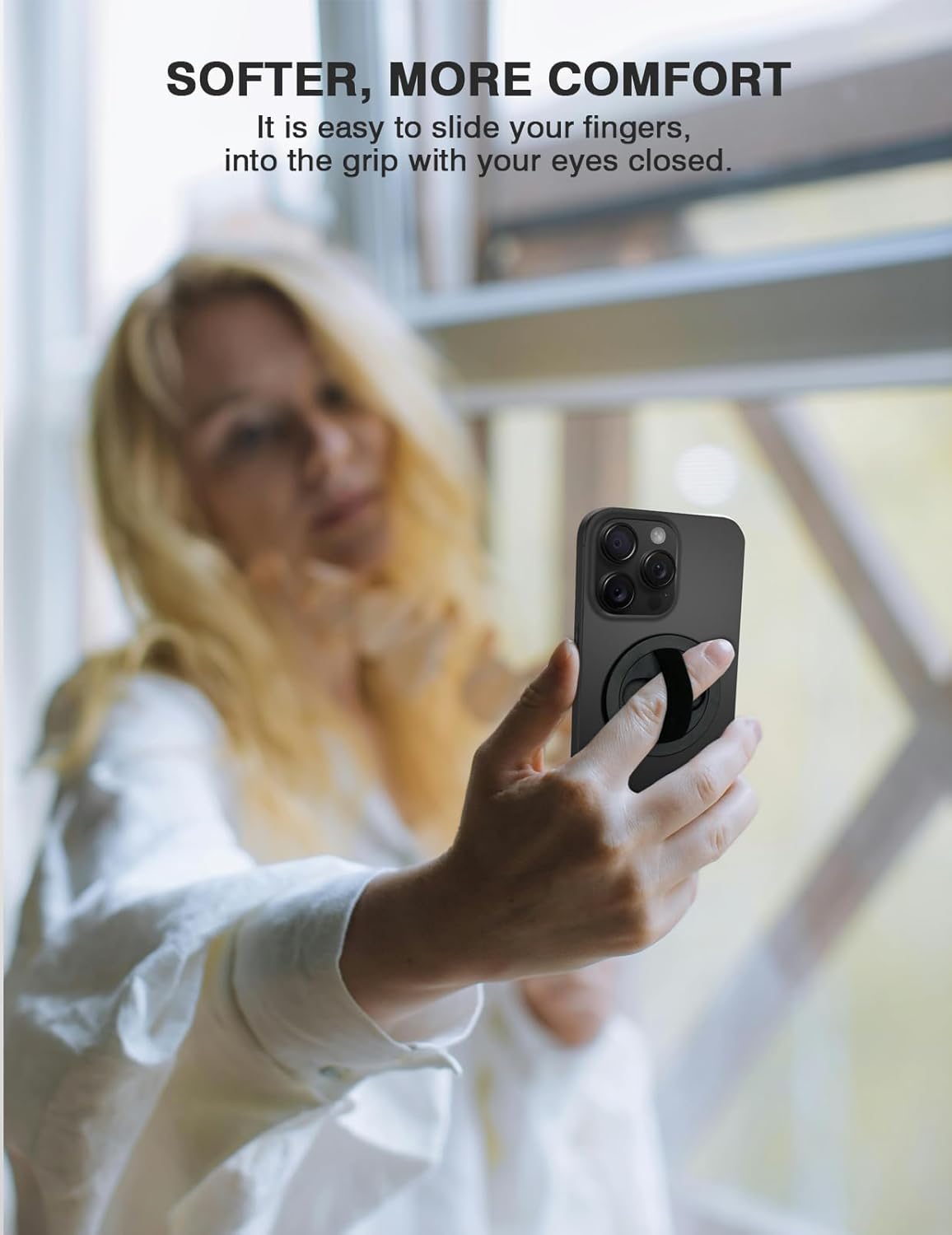 - 【More Softer Grip, Elastic Finger Strap】You'll love how easy it is to slide your fingers into the grip with your eyes closed! The ergonomic finger groove design makes it a breeze. And the soft elastic strap as the phone grip? It's the perfect way to grip the phone more comfortably and firmly.