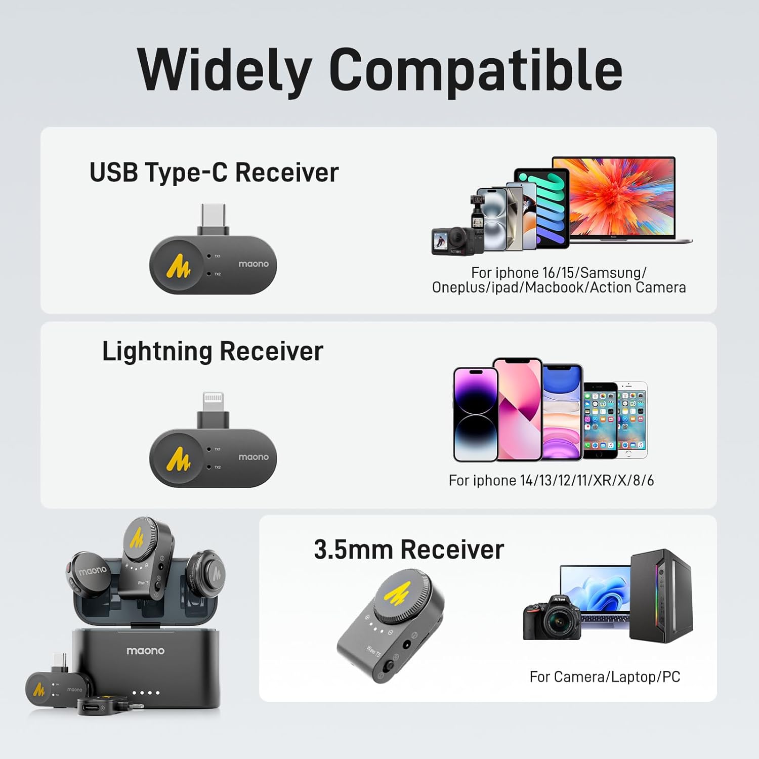 - Next-Gen Wireless Microphone for Creators: MAONO WAVE T5 with 9g weight and cutting-edge technology, small but mighty. It offers industry-leading broadcast sound quality and adjustable noise cancellation. Perfect for filmmakers, vloggers, and podcasters.