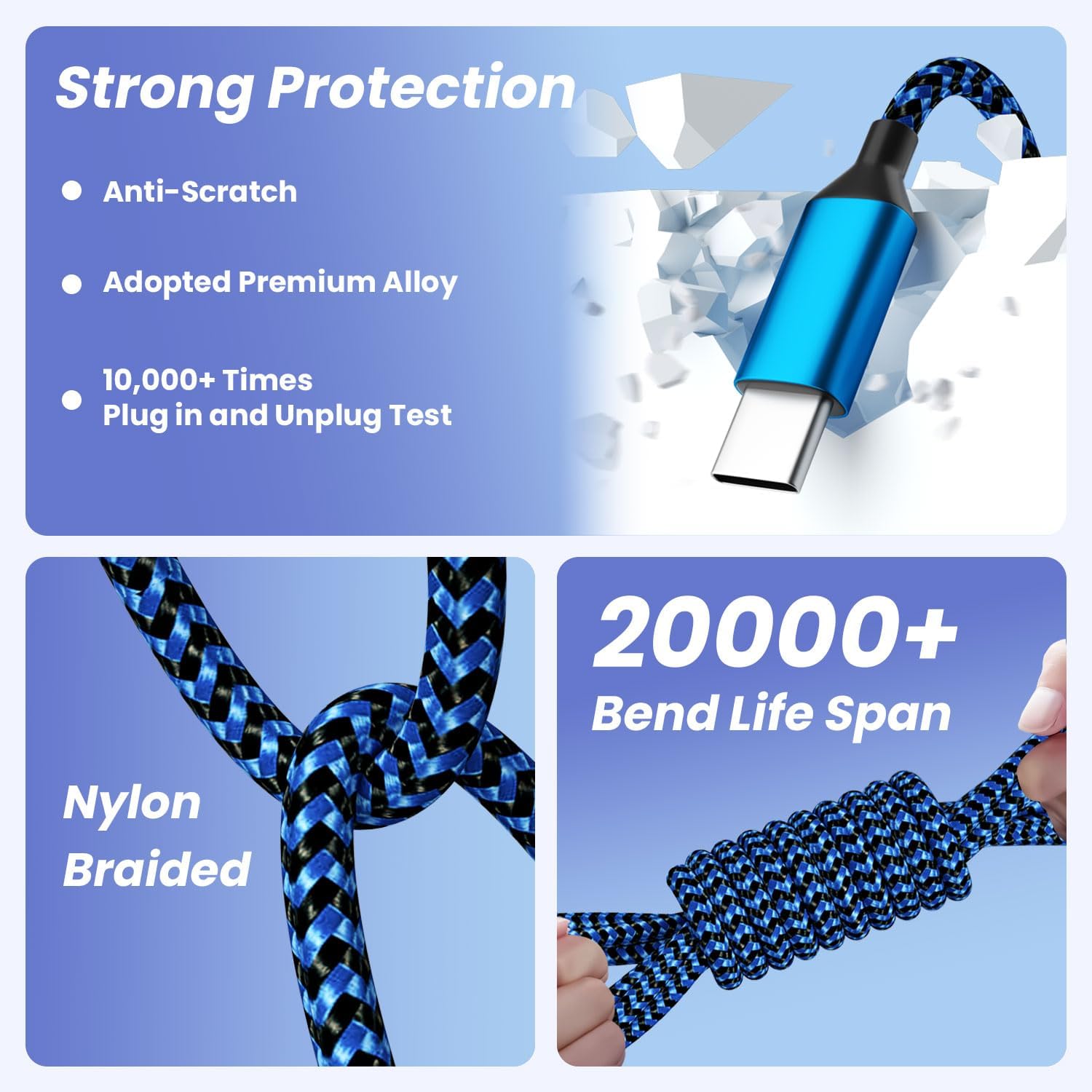 - About Durability: Nylon Braided multiple charger cord is flexible and more-durable. With the tested 20,000+ bending lifespan, charging cables for multiple devices can meet the long-term use.