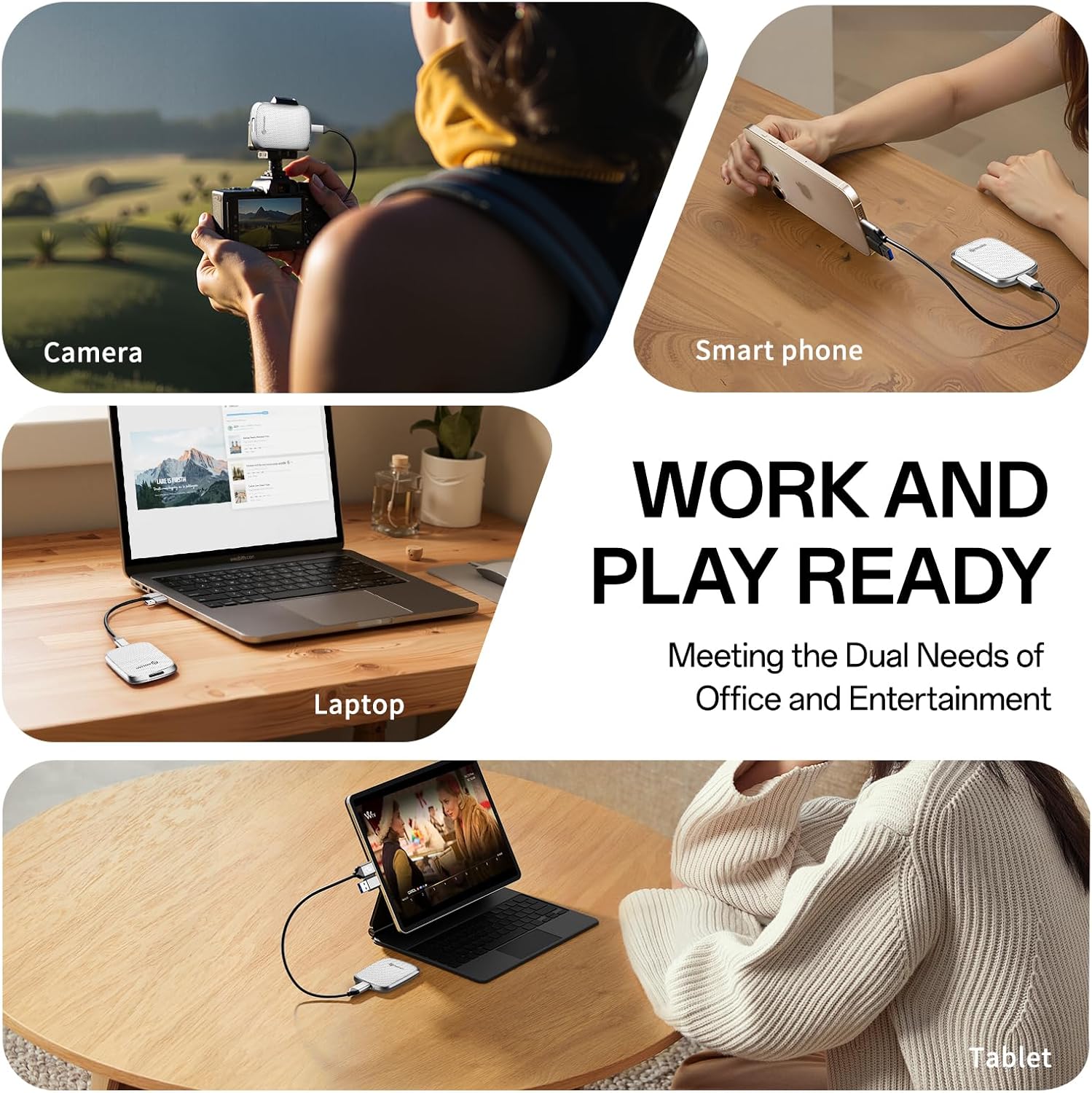 - 【Seamless cross-device use】 Whether you are working or creating for entertainment, you can control your content at any time through your smartphone, PC and other devices with the USB C&A cable. You can connect the PHIXERO P5PLUS Portable SSD to your devices without any operation. It is convenient for everyone to use their mobile phones to directly read files for file sharing, data transmission, and video playback while working or studying.