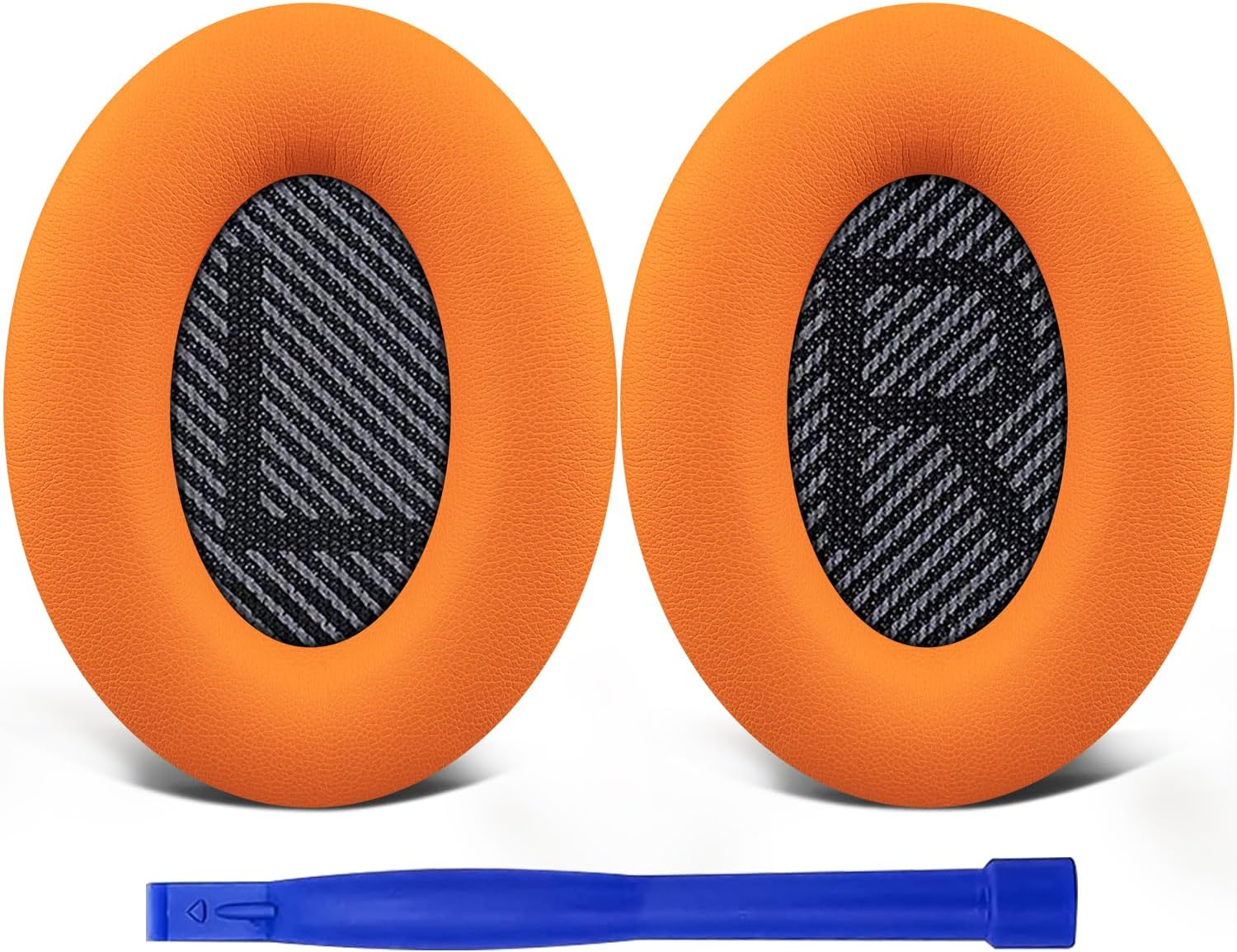 SoloWIT Replacement Earpads Cushions for Bose QuietComfort 35 (QC35) & Quiet Comfort 35 II (QC35 ii) Headphones, Ear Pads with Softer Leather, Noise Isolation Foam, Added Thickness (Orange)