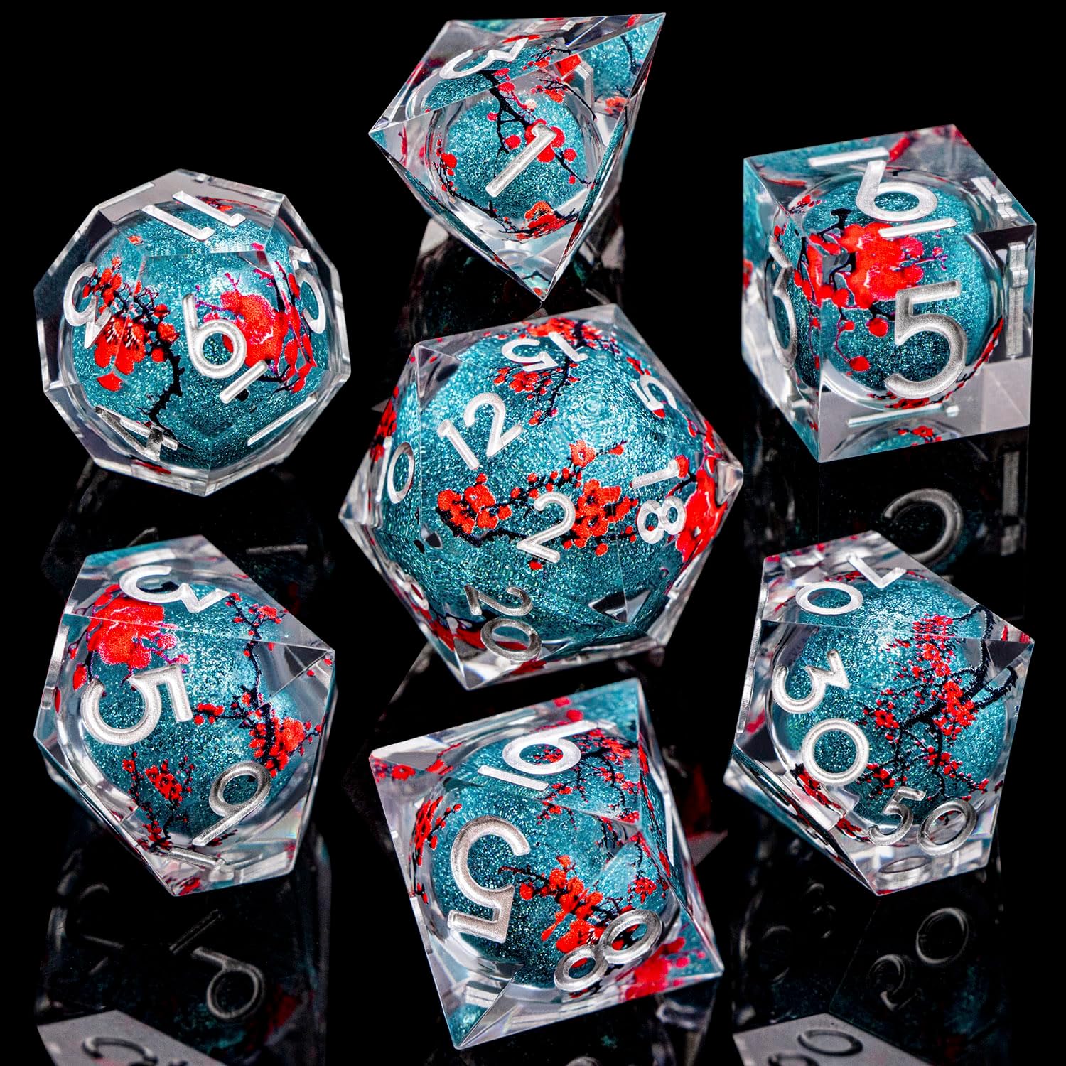 - 【 Clever Design 】: The d and d dice contain liquid core quicksand balls, and different angles will produce different visual effects. while delicate plum blossom decals on the surface add an elegant, nature-inspired touch. D and D dice will receive a lot of praise and jealousy.