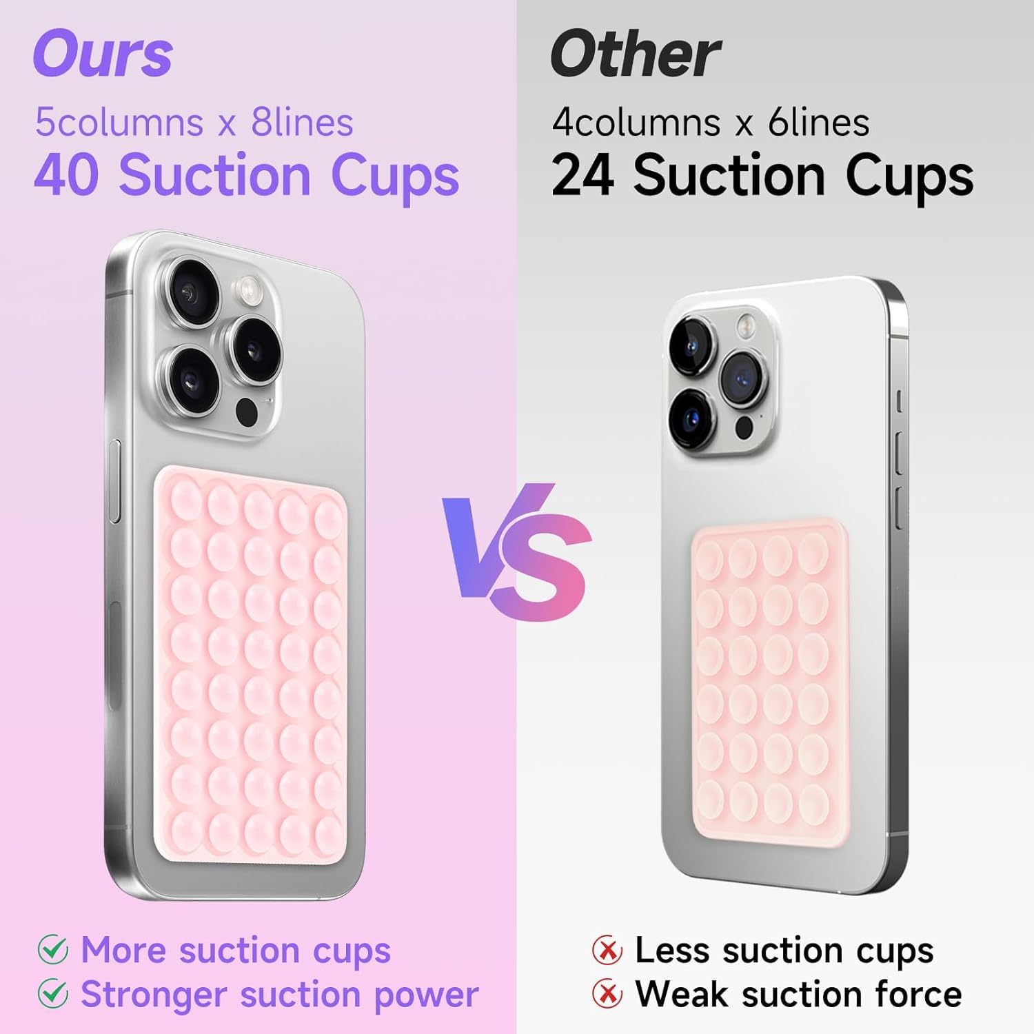 - Strong Adsorption: The inspiration of the silicone phone suction case comes from the adhesive force of the octopus. Each suction cup phone mount have 40 independent suction cups providing a stronger and more stable suction force, so you don't have to worry about your phone falling during use.