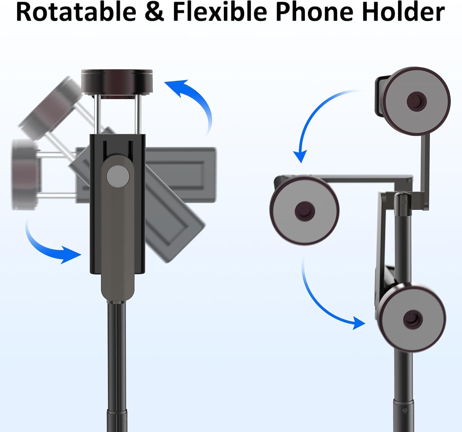 - ROTATABLE SELFIE STICK TRIPOD - 220° adjustable rotation bracket + 270° swivel phone holder for flawless angles.Max 33 in extendable aluminum alloy stick (lightweight yet sturdy), Steady tripod base for shake-free videos and time-lapses.The cell phone holder can support phones with a width of 2.16in-3.42in (screen size of 4-7 inches), compatible with almost all cell phones. Built-in anti-slip pads to protect your phone from falling.