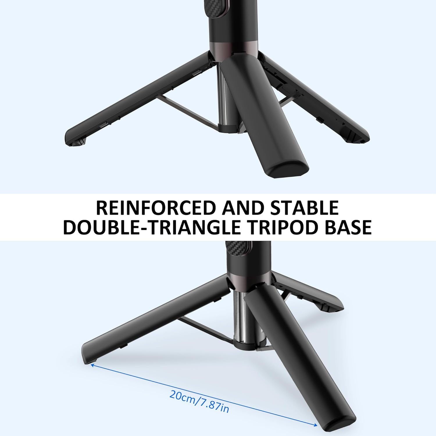 - STABLE TRIPOD - The phone tripod utilizes the principle of triangular stability, while increasing the chassis force area, increasing the moment of force, When it is used as a tripod it can be very stable and not easy to shake. tripod design, it does not require complicated assembly, The tripod is equipped with anti-slip pads for greater stability when unfolded.