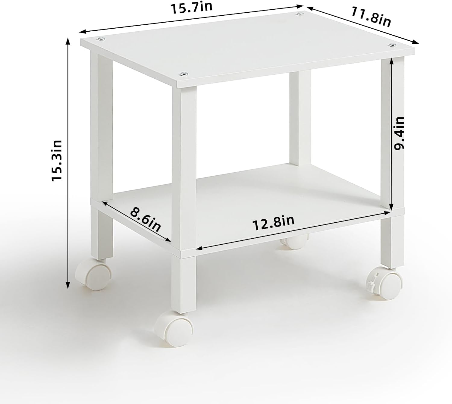 - 【Storage & Space Saving】:Printer stand Size: 15.7 "L × 11.8"W × 15.4"H.Simply push the printer cart under the desk to place office supplies such as printers and documents,free up desk space,keep the desk clean,and create a more comfortable working environment.