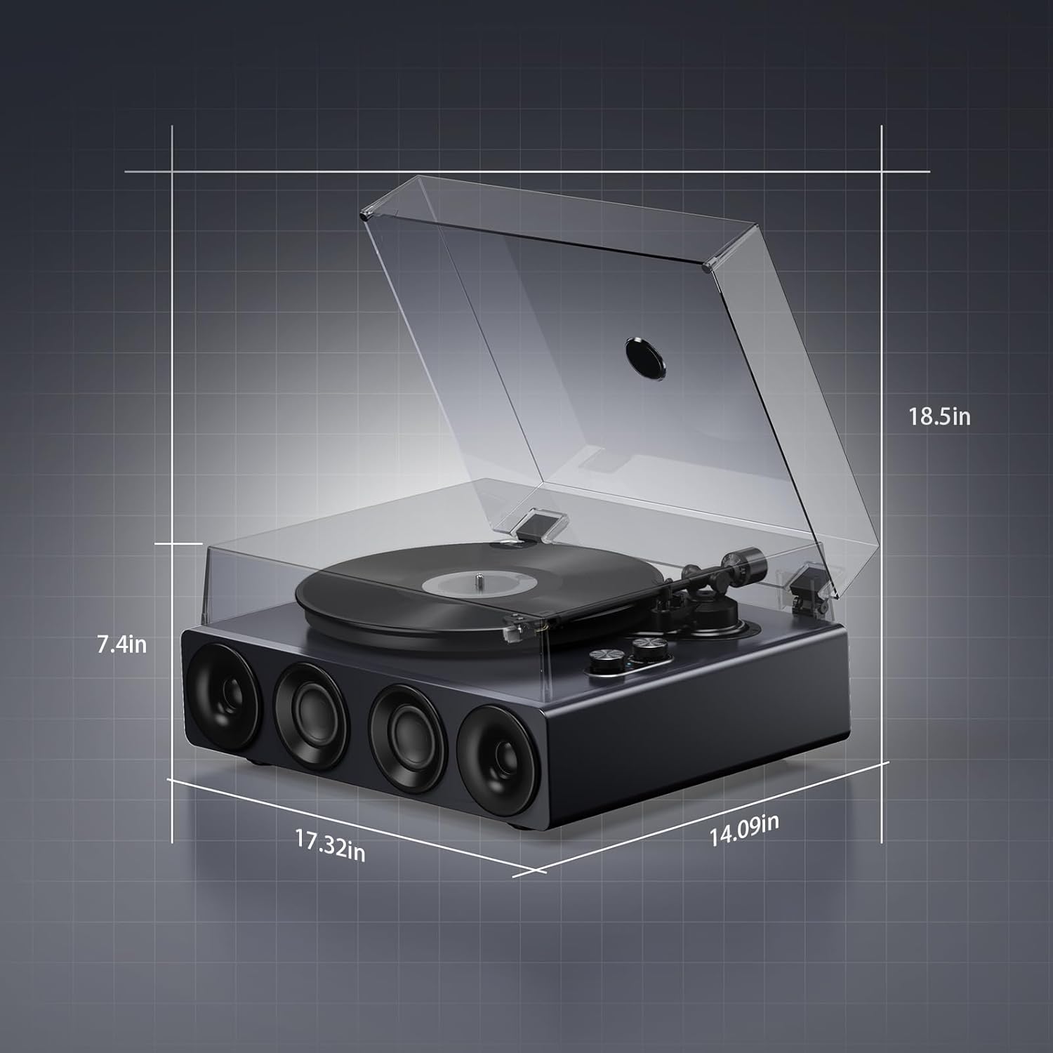 - All-in-One Record Player:With 4 built-in speakers, a built-in amplifier, 33/45 RPM playback, counterweight, Two Mode Playback,it offers all the essential features of a professional turntable