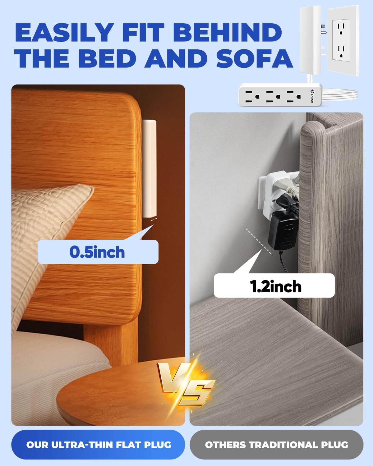 - 【ELEVATE YOUR SPACE】Upgrade your space with our flat plug power strip. Effortlessly hide extension cord for a sleek, organized look in any room. Keep your home safe and stylish with our flat wall plug extension cord.