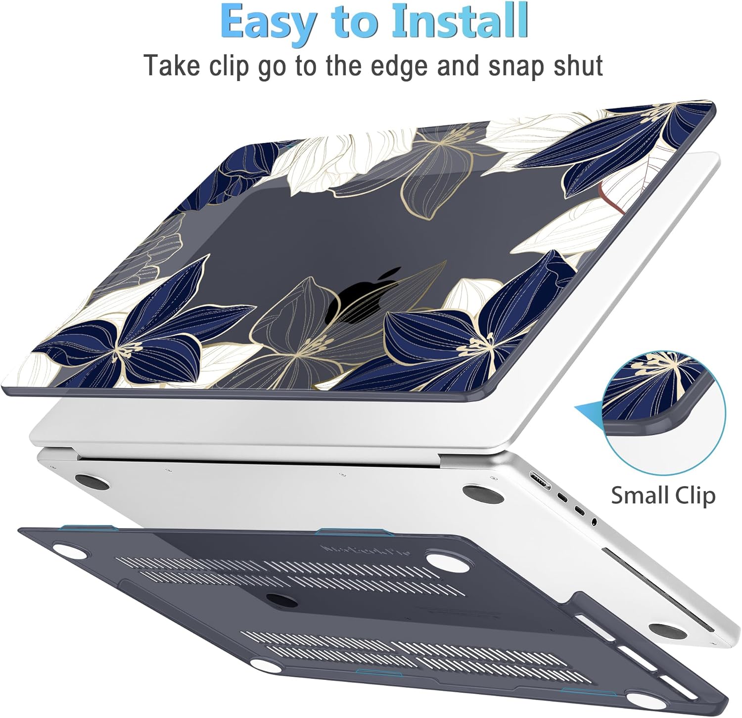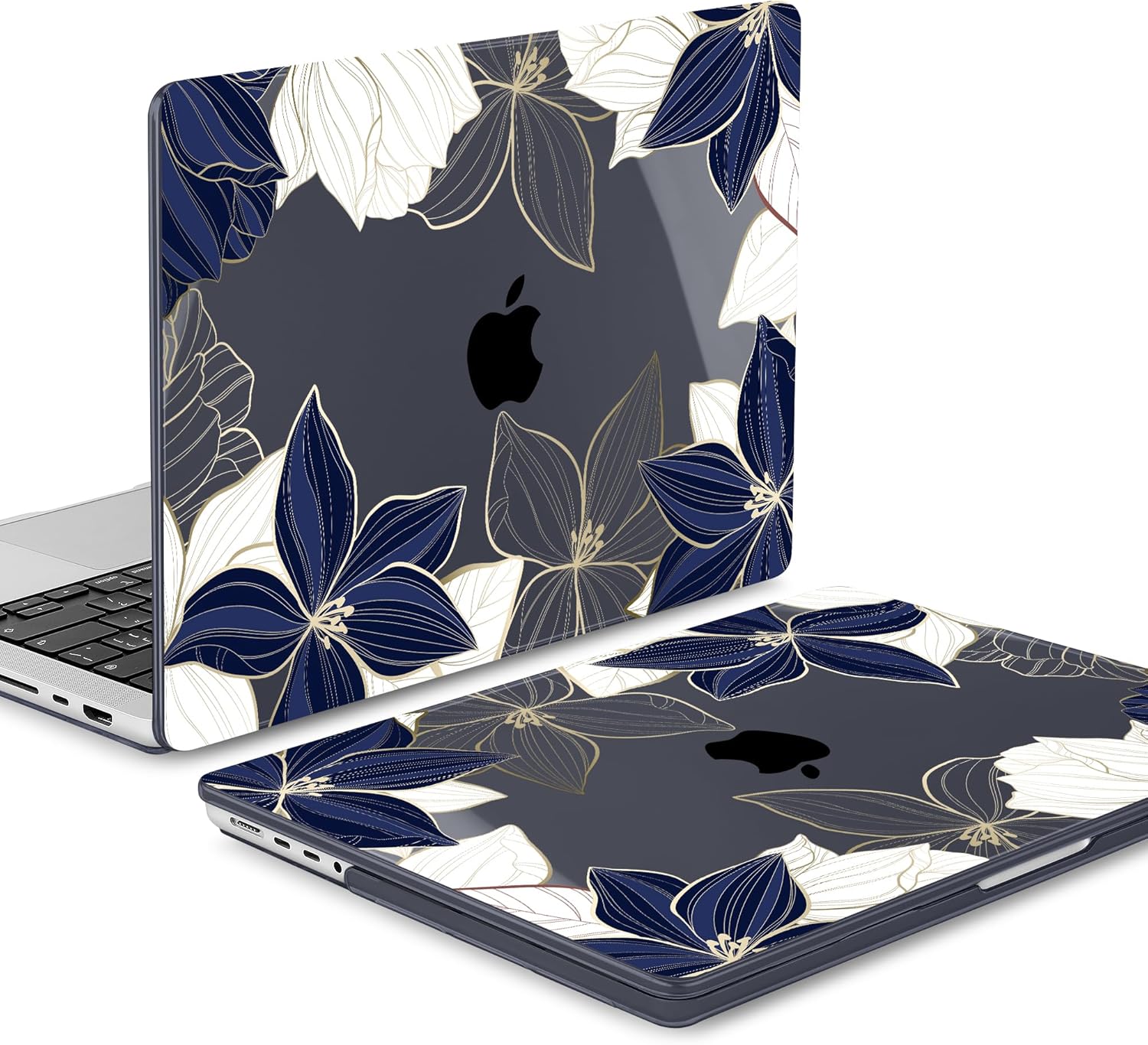 Mektron Case for MacBook Pro 16" M4 A3403 A3186 M3 A2991 M2 A2780 M1 A2485 (2021/2023/2024) Pro/Max with Touch ID, Hard Shell Plastic Laptop Cover Keyboard Cover Screen Protector, Gold line Lily