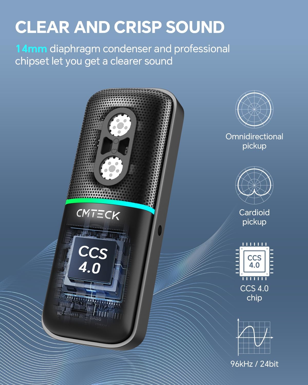 CMTECK USB Microphone for PC, PS4/PS5, Laptop – Computer Microphone with RGB Lighting, Mute Button, Mic Gain, Plug & Play, 3 Sound Modes for Streaming, Podcasting, Recording