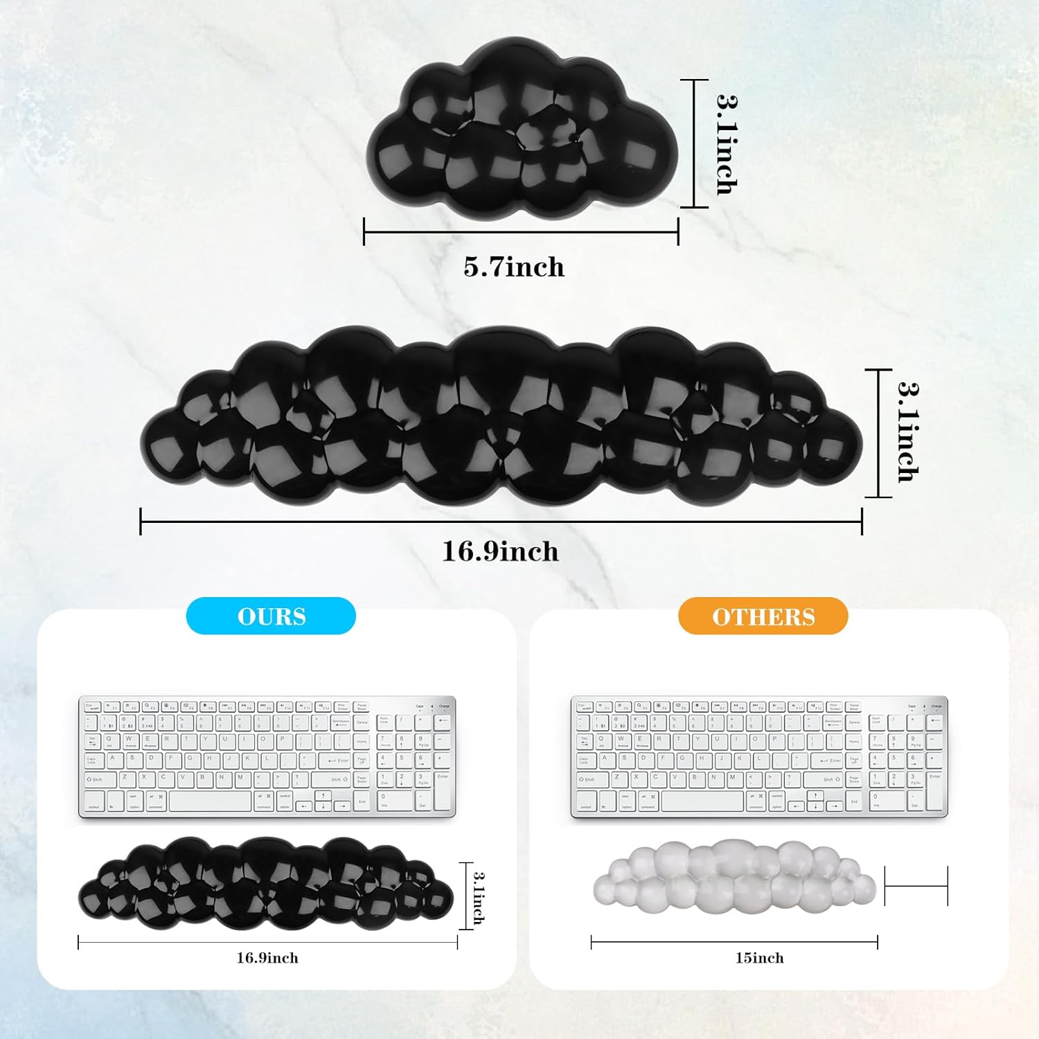- 【Comfortable Cloud Wrist Rest Set】This cute and soft cloud keyboard pad comes with wrist support and perfectly fits your wrist. The bubble cloud shaped design and soft cushioning provide much-needed comfort during prolonged typing, helping to treat and prevent carpal tunnel syndrome.