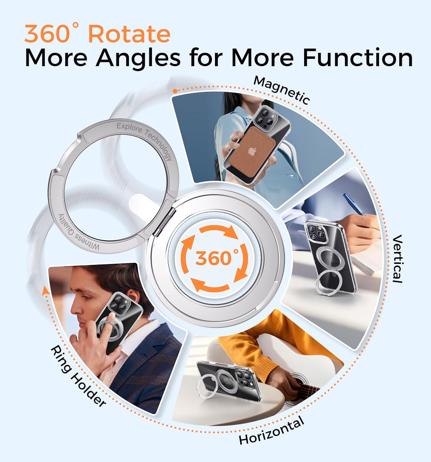 - [360° Seamless Kicktand] Designed for iPhone 16 Pro Max case incorporates an innovative invisible stand design offers a wide range of angles from 40 to 120° horizontally and vertically, with 360° rotational flexibility. Made with strengthened Aerospace-Grade Aluminum, it withstands over 30,000 open/close authoritative tests while remaining as sturdy as new. When the kickstand is folded, the back is perfectly flush and seamless, adding no bulk. You won't even sense its existence when touching.