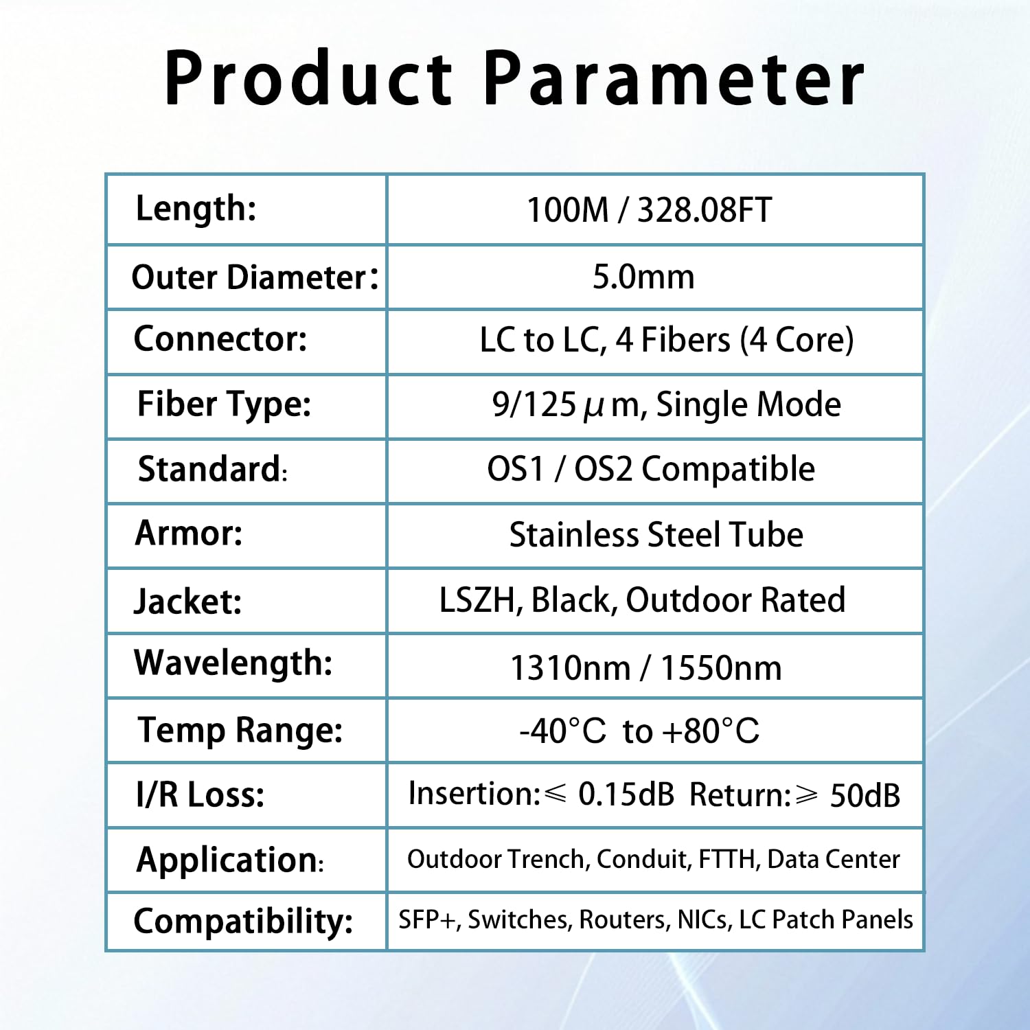 - 3.Plug-and-Play Simplicity: Factory-terminated and fully tested, this armored fiber cable requires no splicing. Simply plug into switches, patch panels, SFP/SFP+, XFP, QSFP+ transceivers, fiber NICs, media converters, ONU/OLT ports, or network testers for fast deployment in field projects or telecom rollouts.