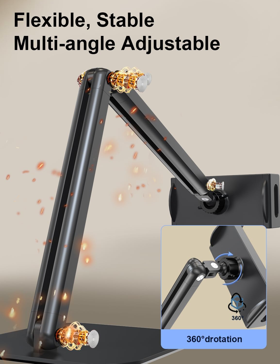 - 【Flexible & Adjustable Design】Regular tablet stands become loose over time. Our Tablet Stand for ipad is crafted from aerospace-grade aluminum alloy and features precision metal hinges, ensuring exceptional stability and reliability. It supports multi-angle adjustments to accommodate various needs, providing you with a more comfortable experience
