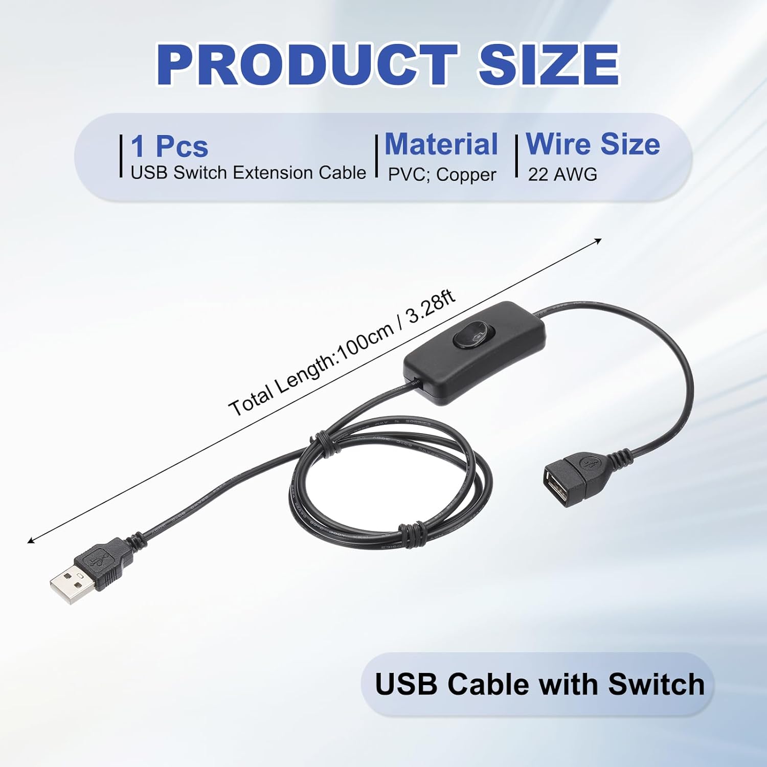 - Specification: Color: Black; Material: PVC; Copper; Wire Size: 22 AWG; Total Length: 100cm / 3.28ft; Package List: 1pcs x USB Switch Extension Cable
