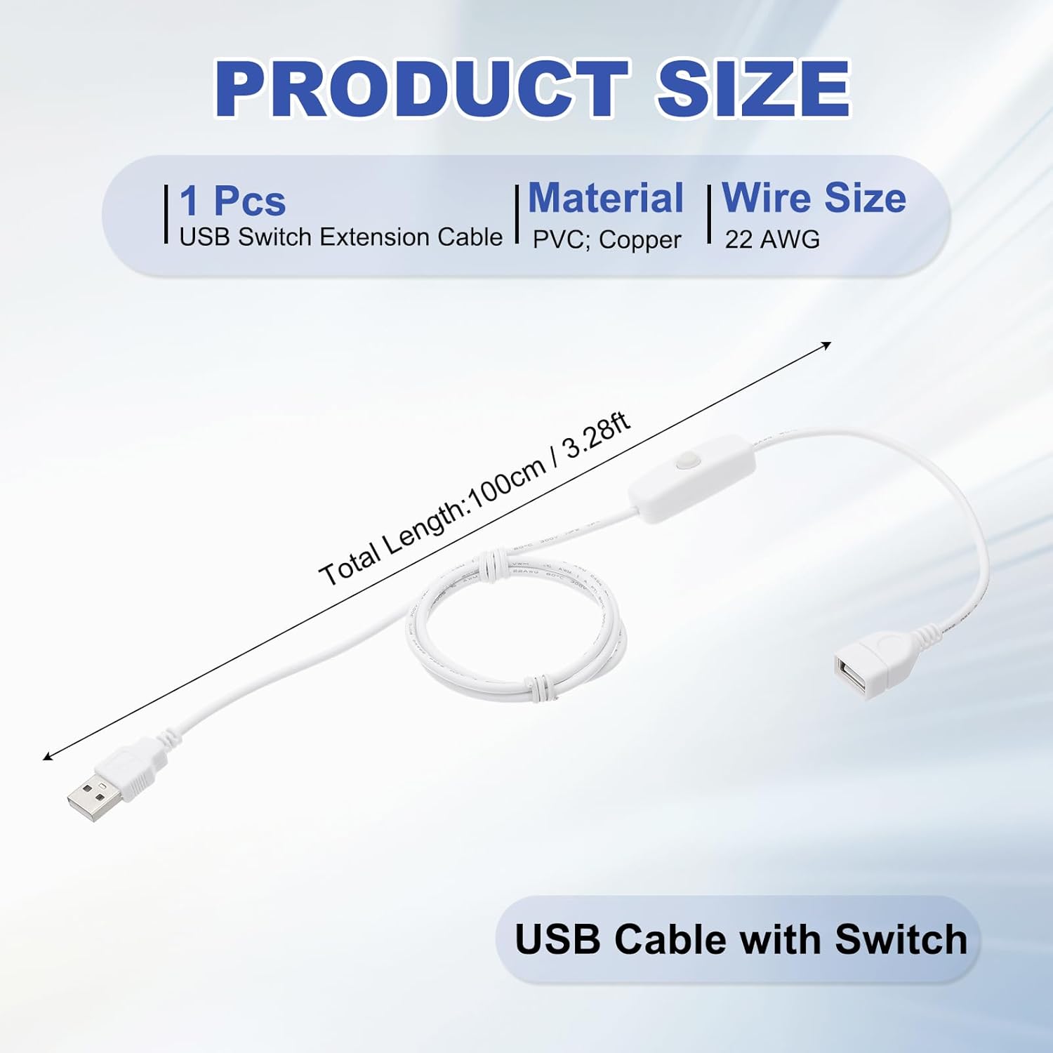 - Specification: Color: White; Material: PVC; Copper; Wire Size: 22 AWG; Total Length: 100cm / 3.28ft; Package List: 1pcs x USB Switch Extension Cable