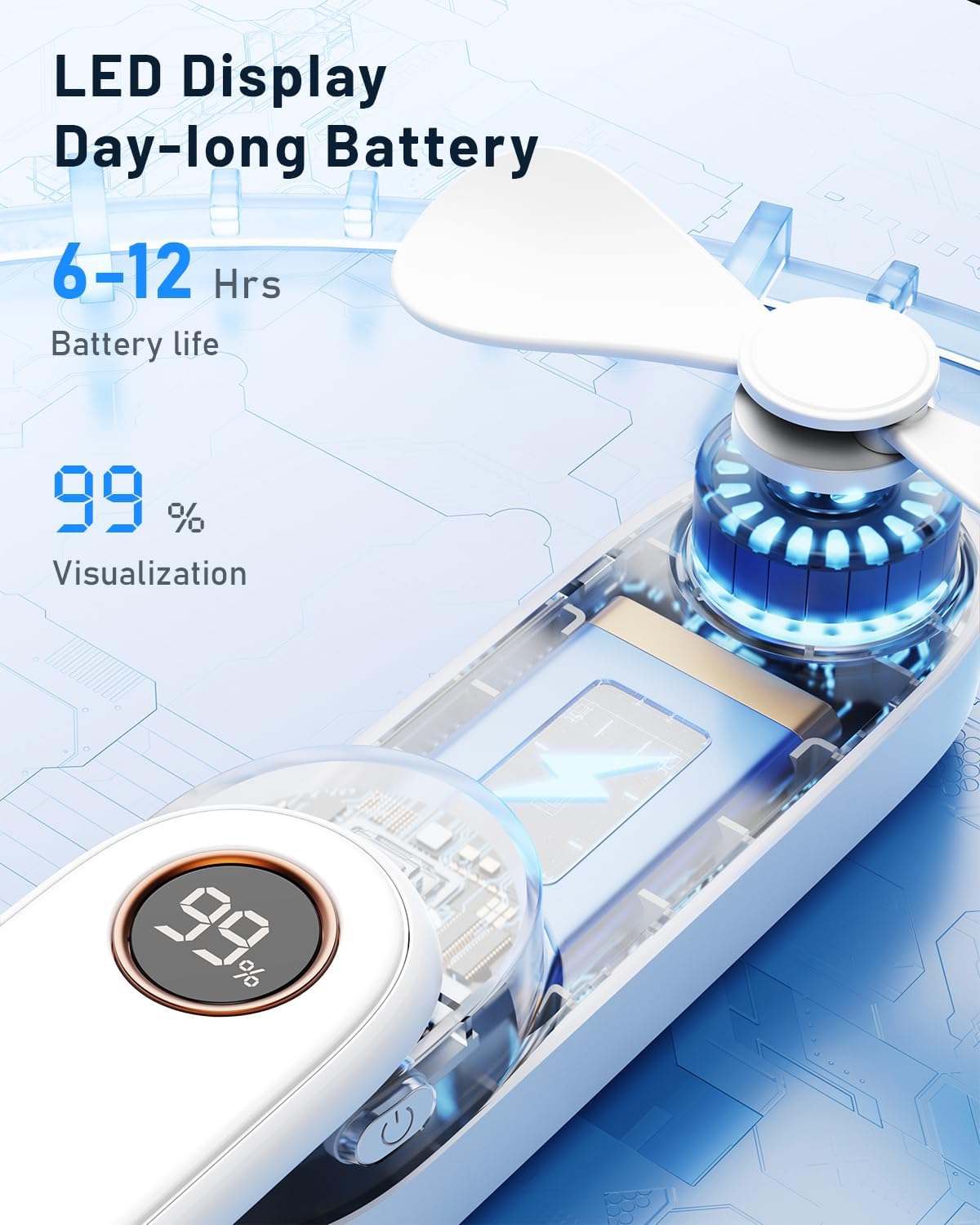 - 6-12 Running Hrs & LED Display: This portable fan features a rechargeable battery, The LED display shows real-time battery levels, ensuring you stay cool all day—an ideal gift for girls, moms, and women