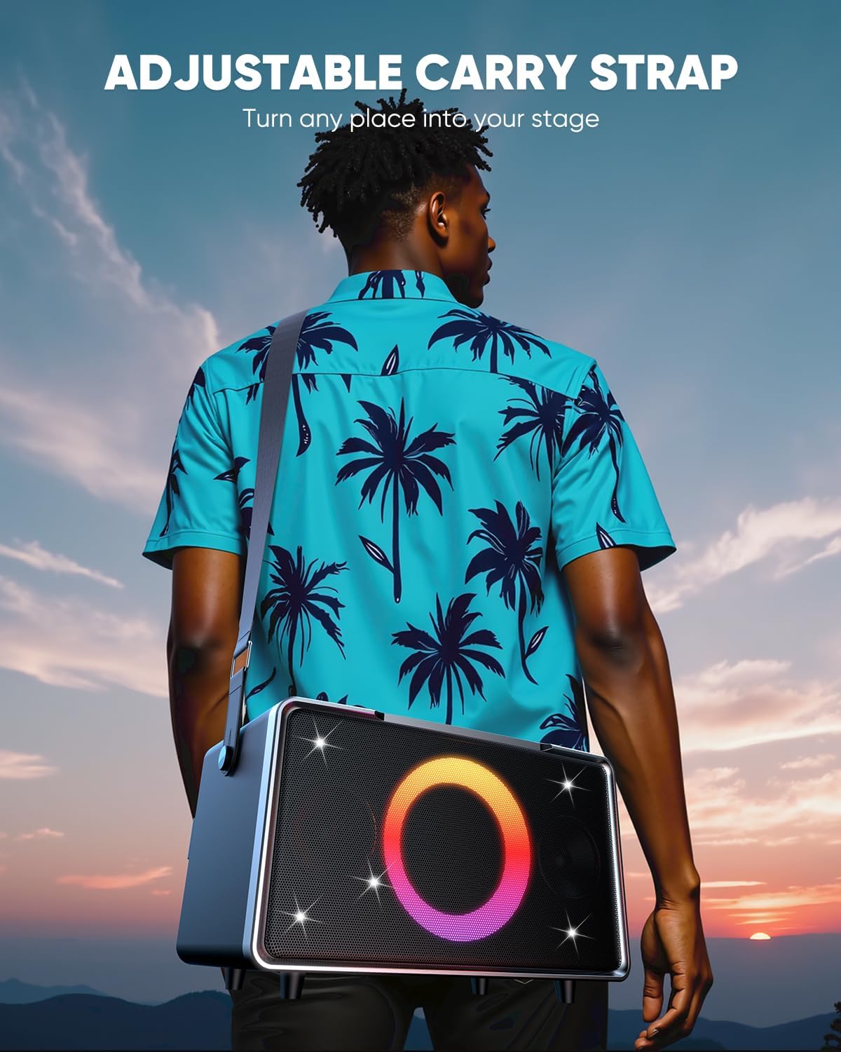 - DYNAMIC LIGHT SHOW: 7 dynamic light modes sync with your music, dynamic lights sync with music, enhancing party atmospheres. This outdoor bluetooth speaker creates light shows to instantly ignite the party atmosphere.