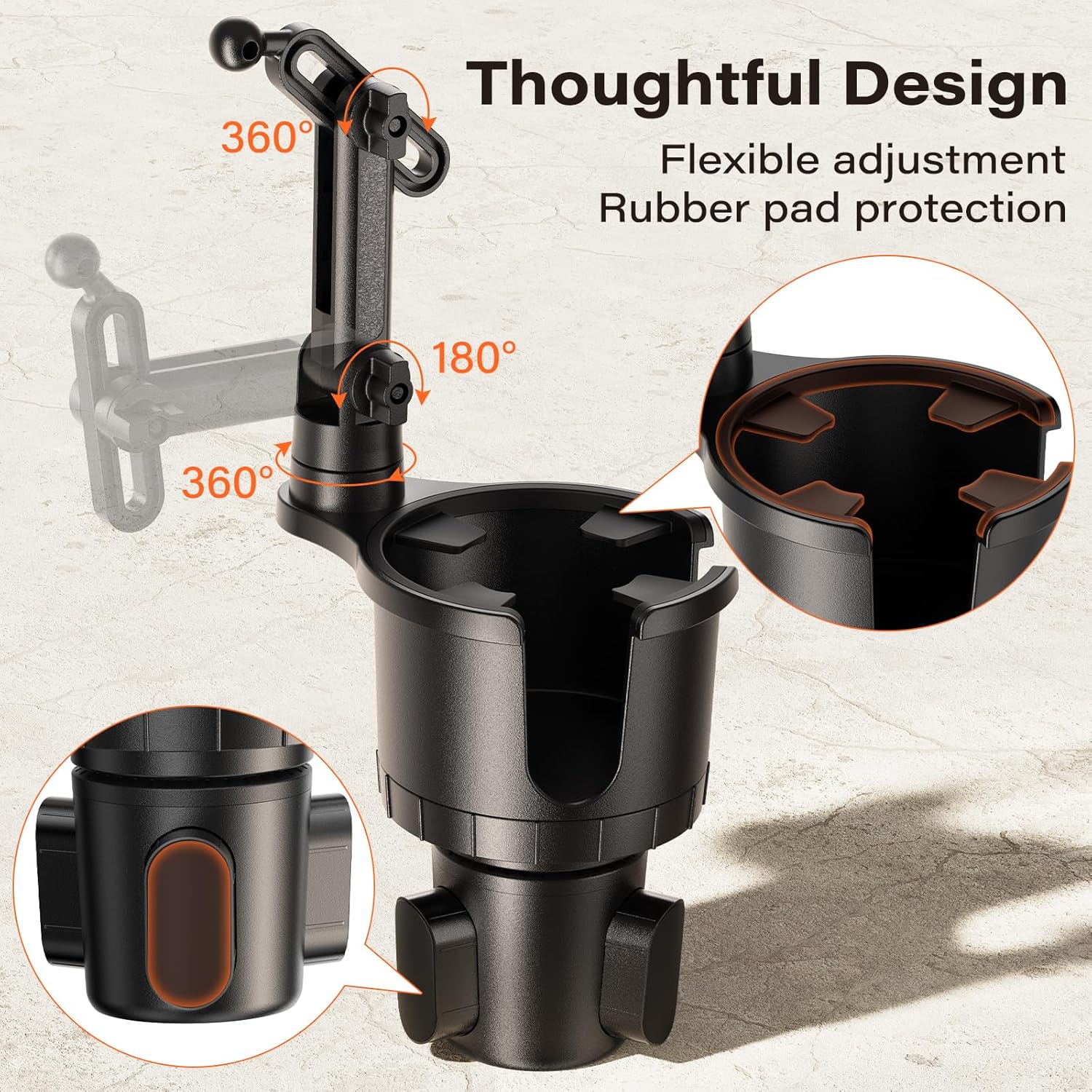 - Adjustable Base for Most Cup Holders: The twist-to-expand base (68–97mm) locks tightly into most round car cup holders—works great in sedans, SUVs, vans, and trucks.