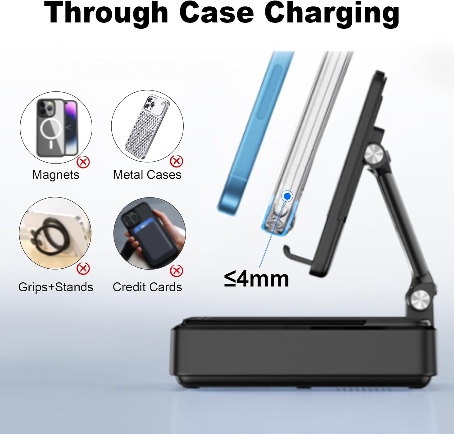- 【Safe Dual Coil Wireless Charger】Built with multiple safety features, including overcurrent, overvoltage, overheating and short circuit protection. Conducting Dual Coils, Wider Charging Area: Charge in landscape orientation while watching videos or portrait mode for messaging and facial recognition—all without ever cutting power. IMPORTANT NOTICE: Please remove metals, magnets and credit cards on the back of your smartphone when charging, please do not use cases with thickness over 4mm.