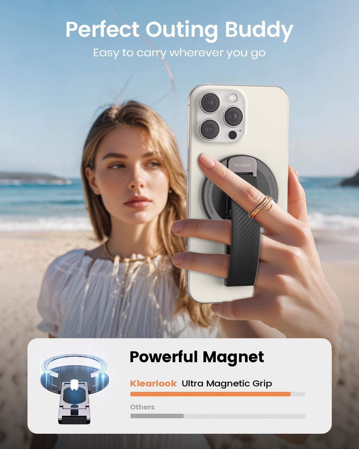 - [Secure Hold That Stays Put] Built with upgraded N52 magnets, this magnetic phone grip delivers double the magnetic force for a rock-solid hold. Whether you're on the move or staying still, your phone locks into place securely, no drops. No drops, no slips, no worries—even during one-handed use.
