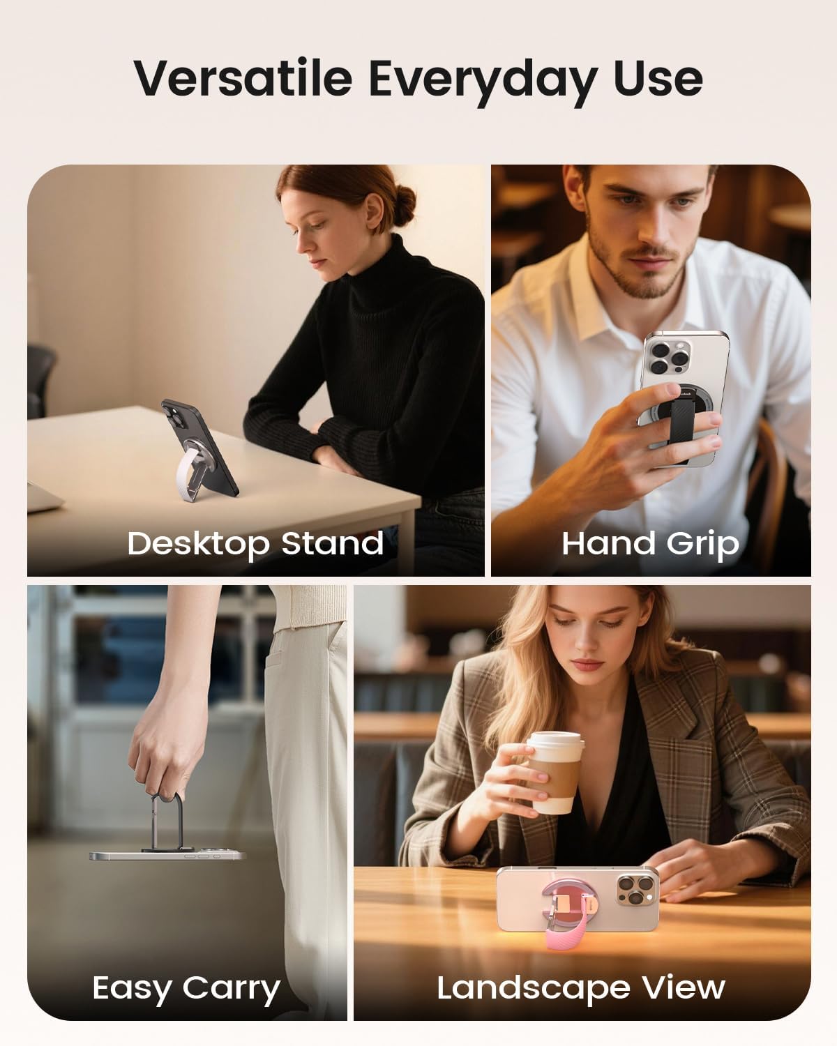 - [Slim Build, Stylish Fit] Designed to stay out of your way, this slim, lightweight grip adds no bulk to your phone. Sleek enough to blend into your daily style and comfortable to hold all day. Whether walking, snapping photos, or on the go—it keeps things light and effortless.