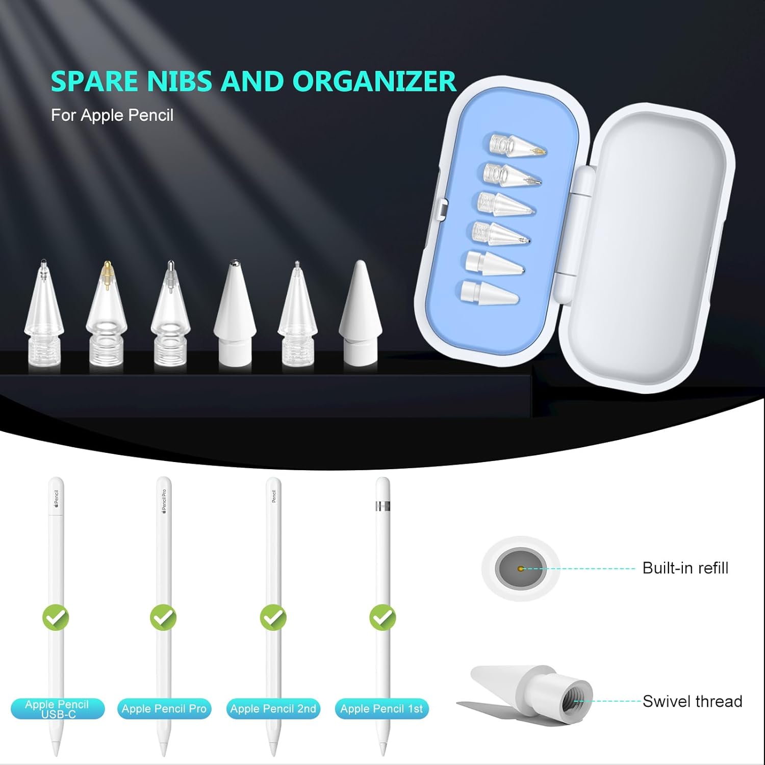 - Easy to Remove: Threaded design allows for easy installation & removal of Apple Pencil replacement tips. Includes a nib organizer box for convenient storage & replacement, making it a practical accessory for iPad users