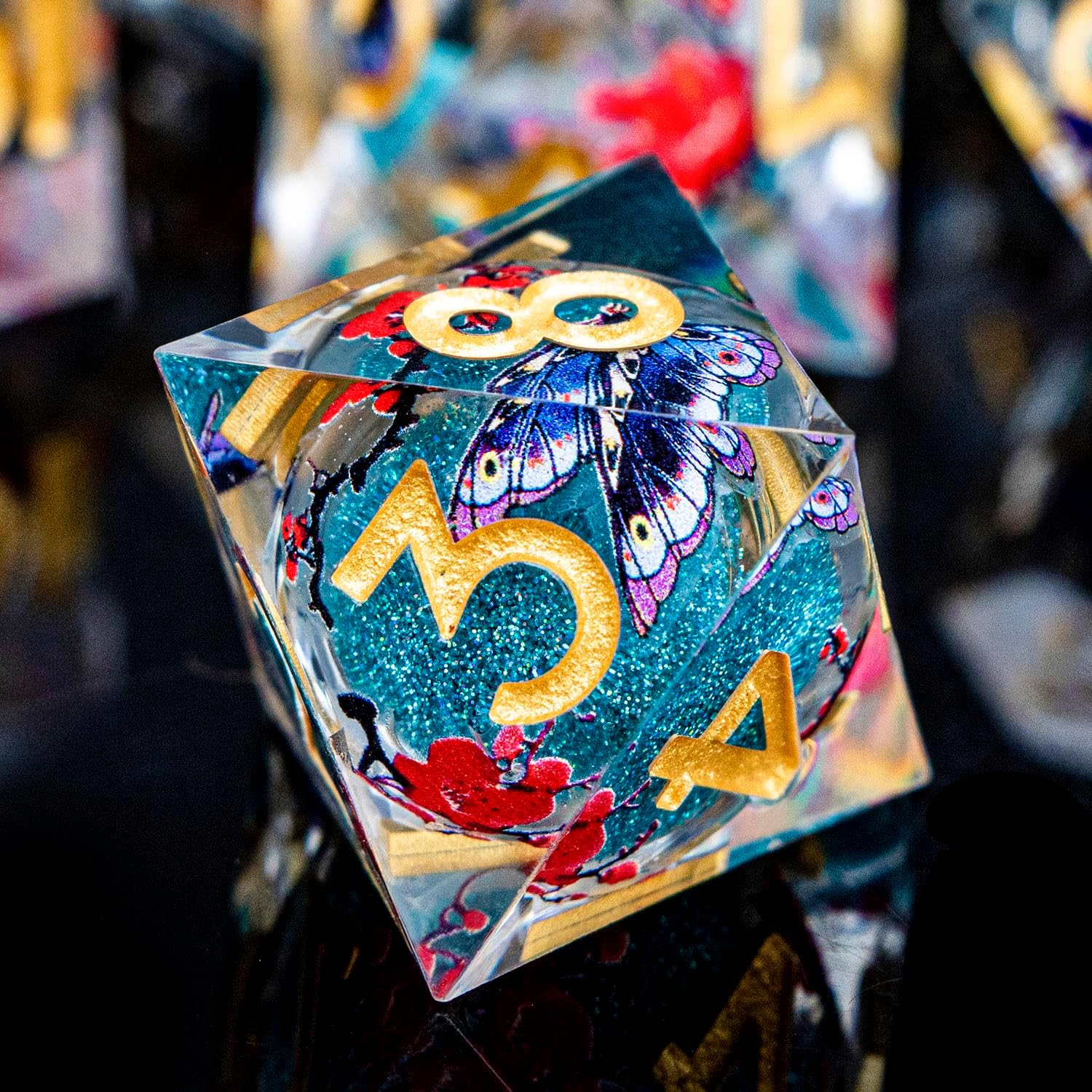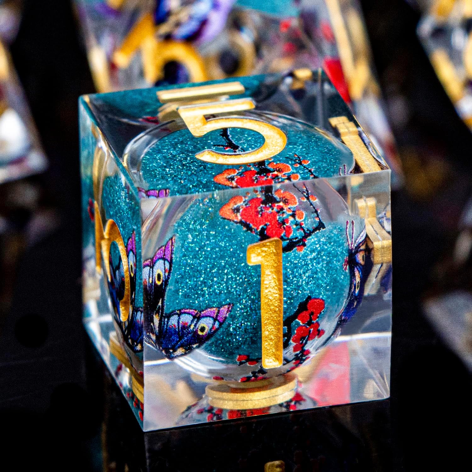 - Liquid Core Dice: At the heart of resin dice lies a transparent sphere, filled with shimmering liquid sand that moves gracefully with every roll. This unique design adds a mesmerizing visual element to your game experience.