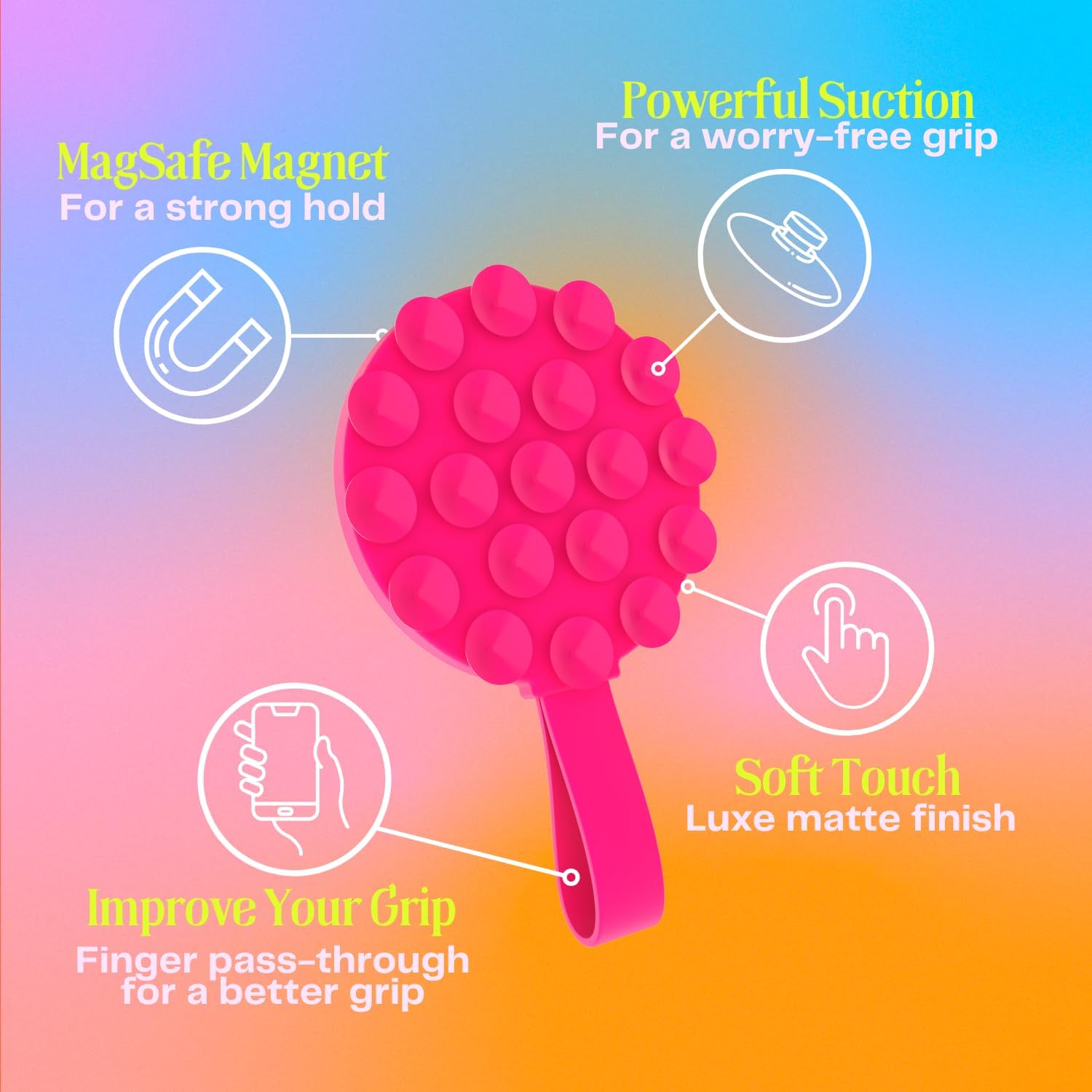 FELONY CASE - Neon Pink Magnetic Suction Cup Phone Mount and Grip – Strong Silicone Holder for Hands-Free Convenience, Compatible with MagSafe Cases and iPhone 16, 15, 14, 13, 12
