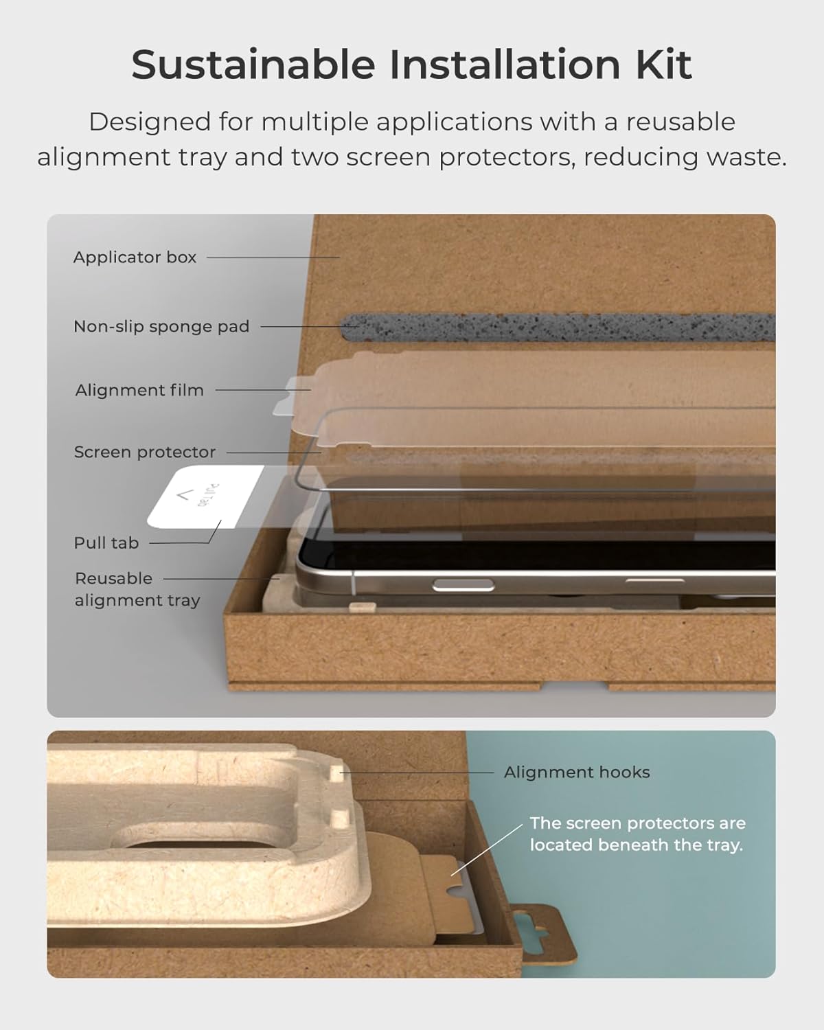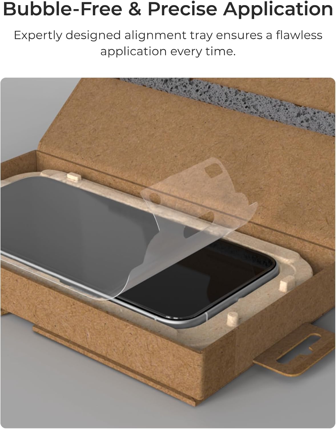 - Anti-Bubble Design: The packaging of this product makes installing your screen protector a snap. Simply place your phone in the alignment tray with the screen protector, close the box, pull the protective cover off the screen protector while the box is closed, and you’ll have a seamless bubble-free installation