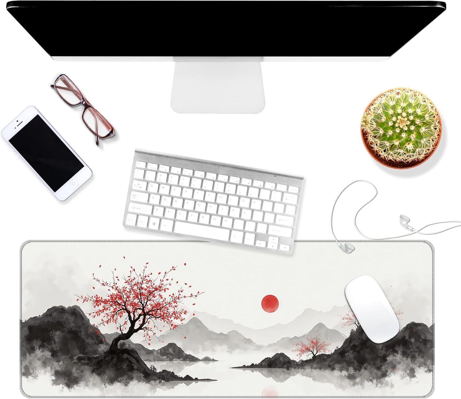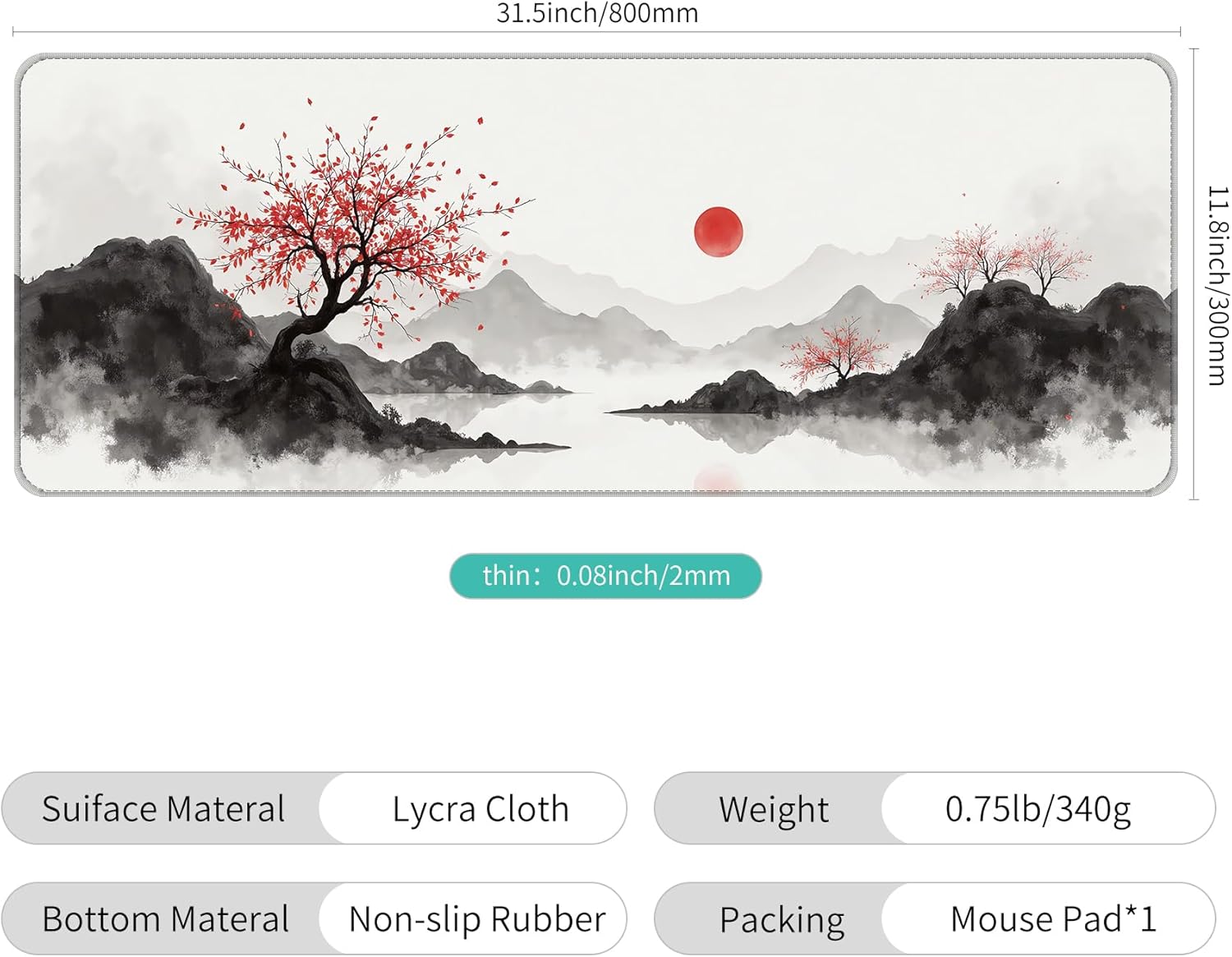 Dynippy Thin Extended Gaming Mouse Pad (31.5 * 11.8 * 0.08 inch) with Stitched Edges Large Mousepad Long XXL Keyboard and Mouse pad Desk Mat for Gaming Office & Home - Artistic Painting