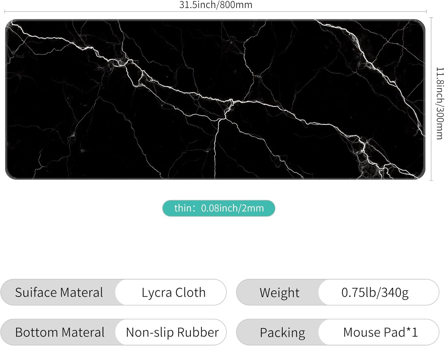 - Large Size - 31.5*11.8*0.08 inch(800*300*2mm)makes it provide larger area fits both for keyboard and mouse