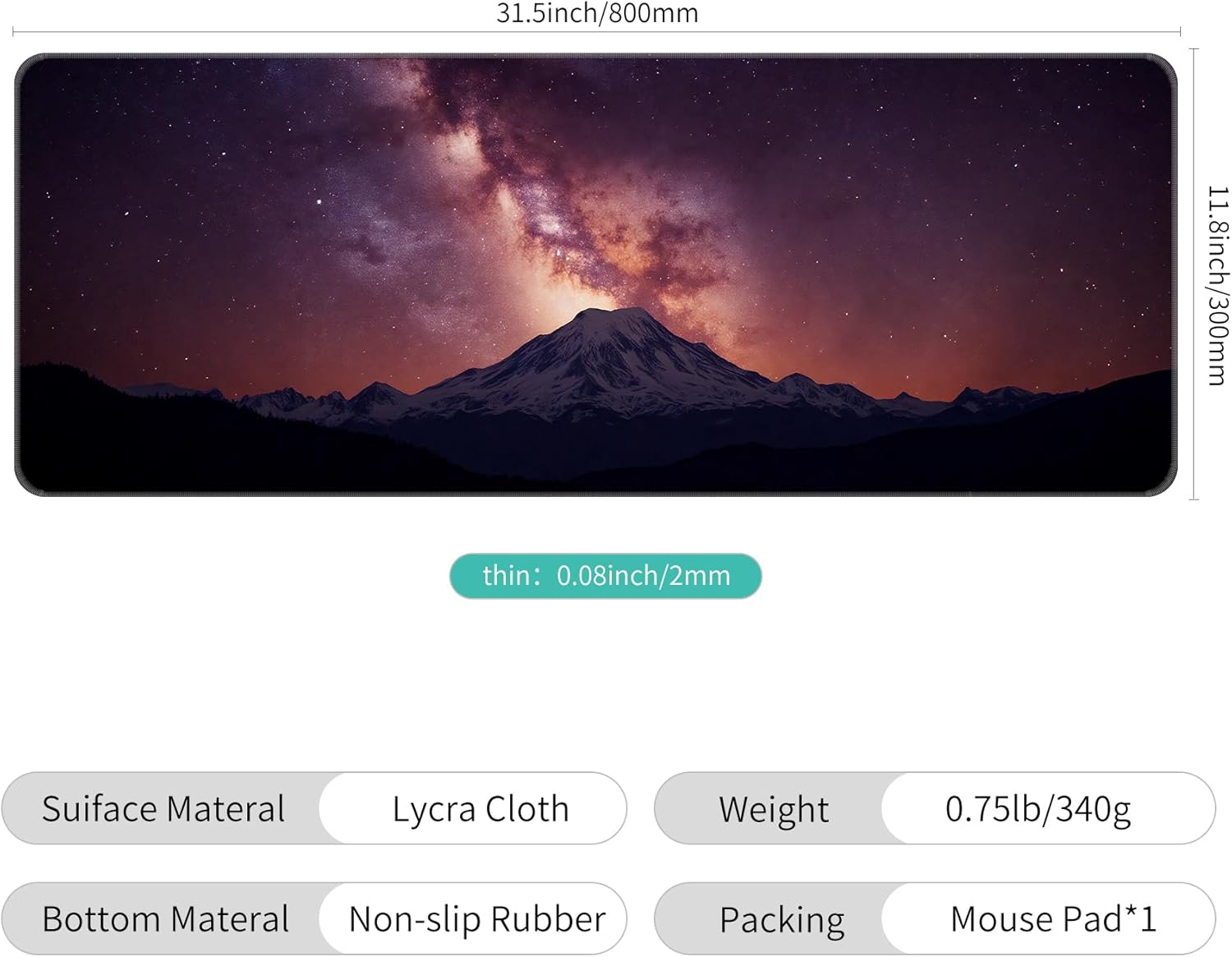 Dynippy Thin Extended Gaming Mouse Pad (31.5 * 11.8 * 0.08 inch) with Stitched Edges Large Mousepad Long XXL Keyboard and Mouse pad Desk Mat for Gaming Office & Home - Mountain Under The Starry Sky