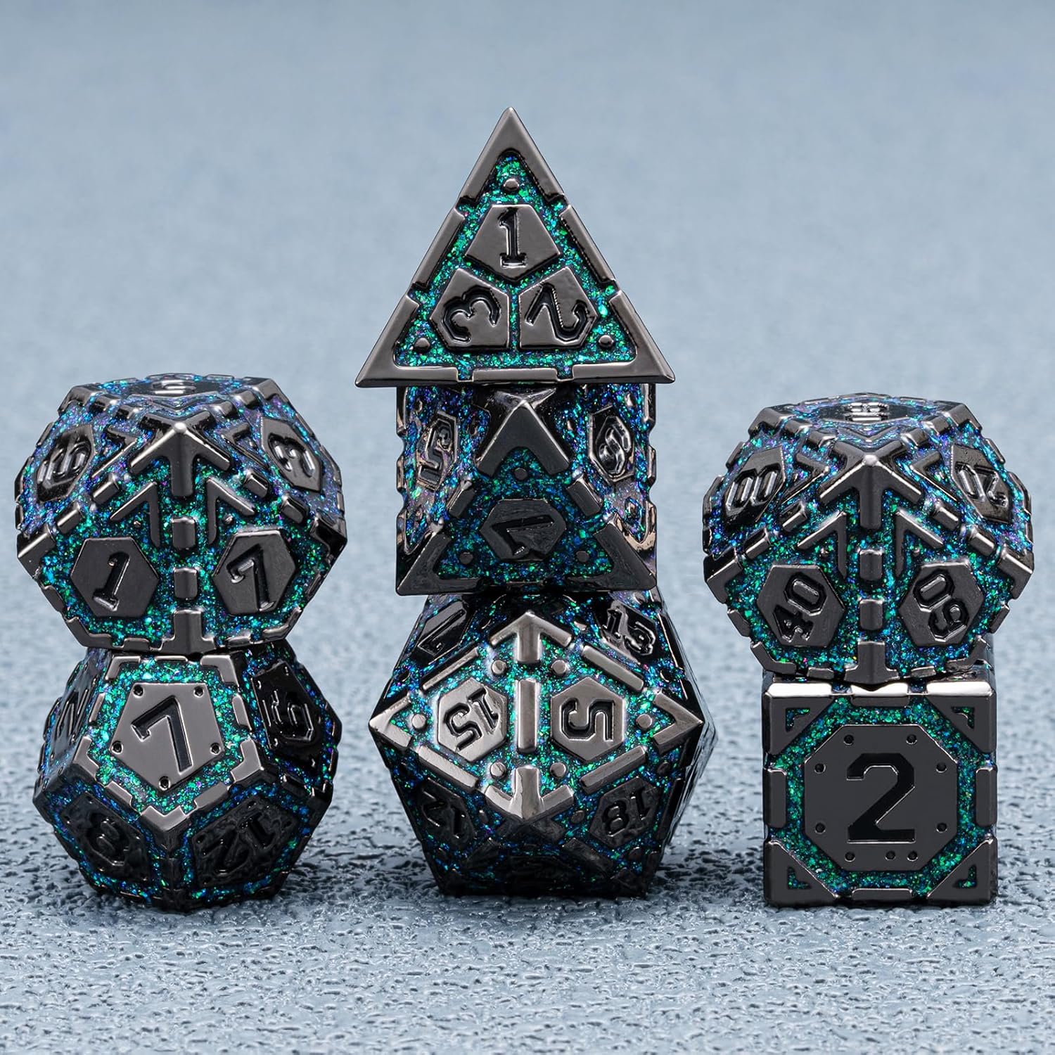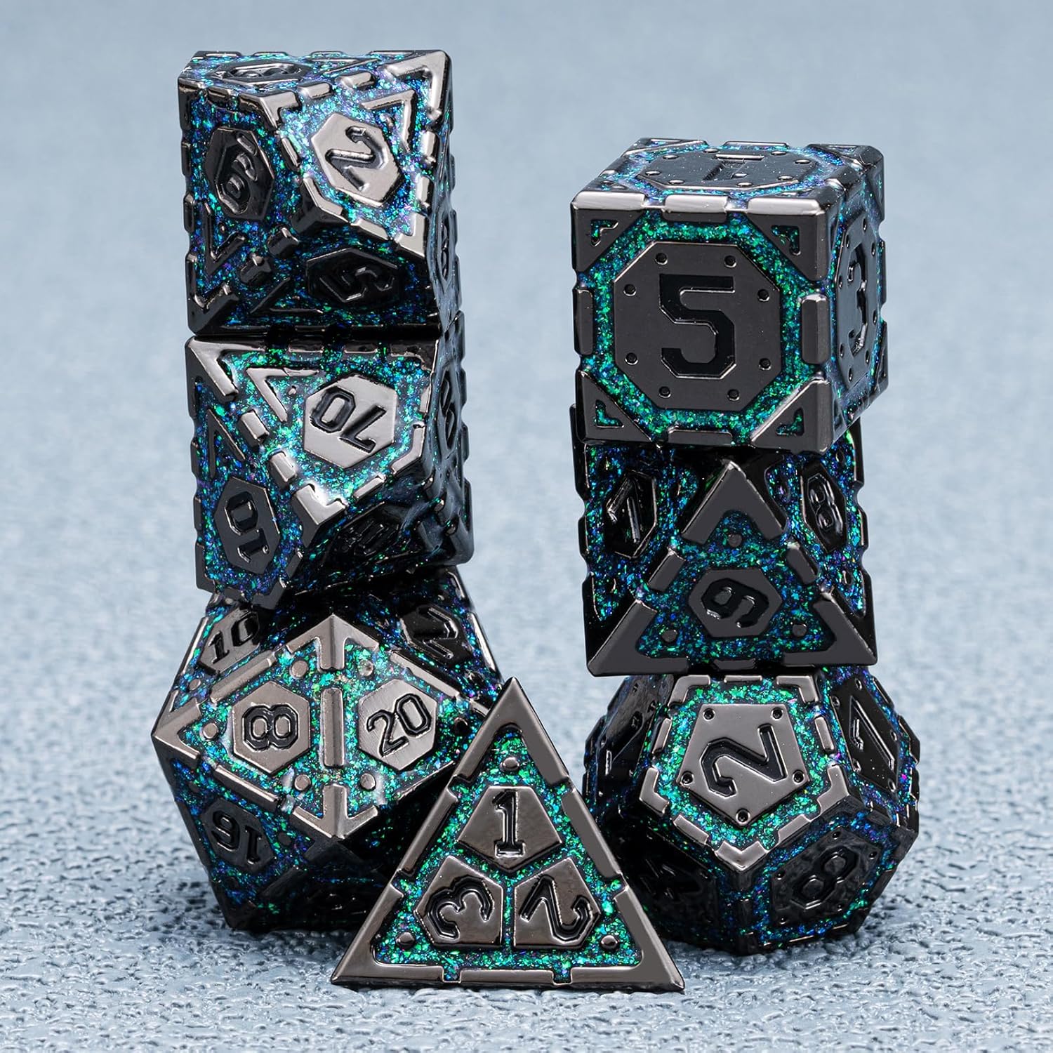 - Excellent Craftsmanship - metal dice sparkling geometric patterns design, the dice is having the cool engraving. All of these elements are carved on the metal dnd dice set with exquisite craftsmanship