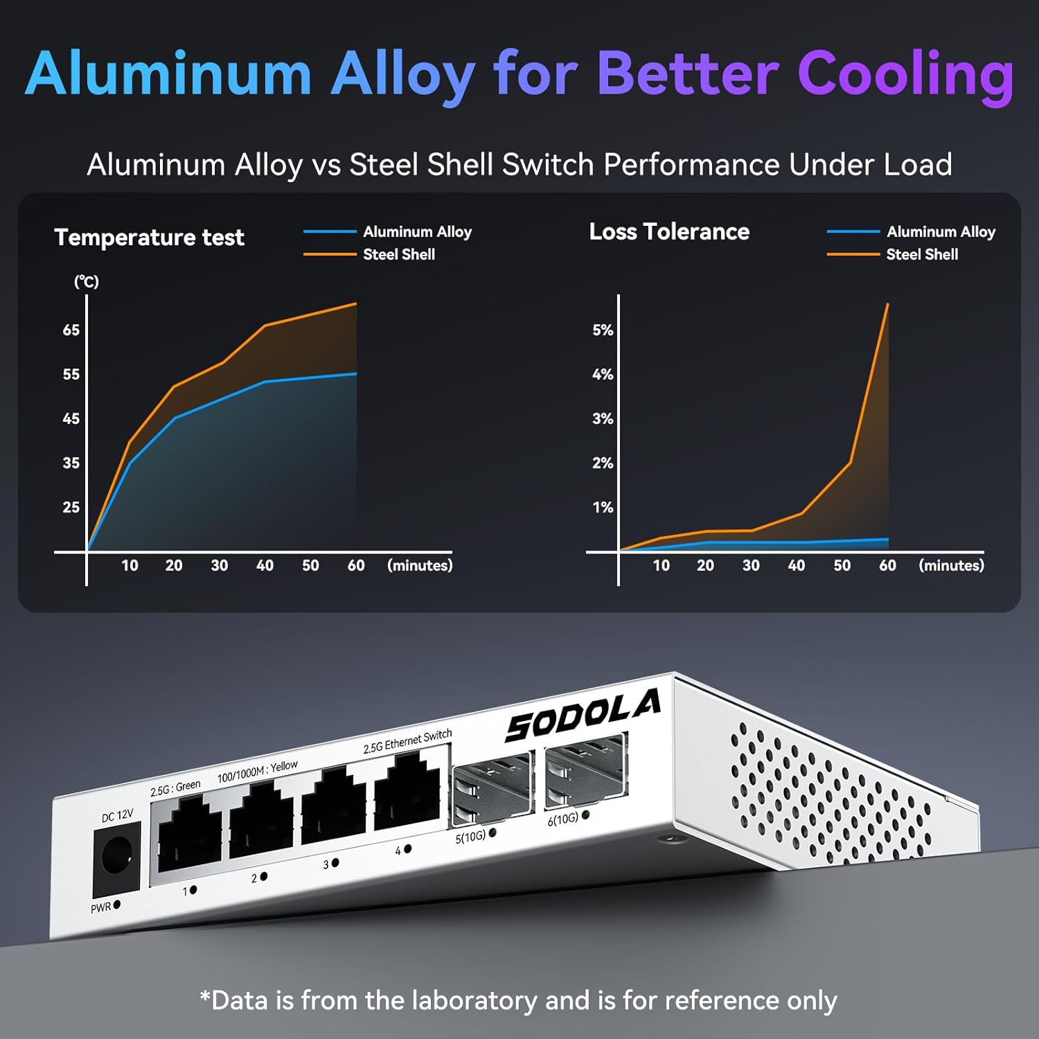 SODOLA 2.5Gb Switch,4 x 2.5G Base-T Ports, 2 x 10G SFP+, Aluminum Alloy Cooling & Magnetic Mounting,2.5 Gigabit Network Switch Fanless Plug & Play, Unmanaged Multi-Gigabit Switch,Lifetime Protection