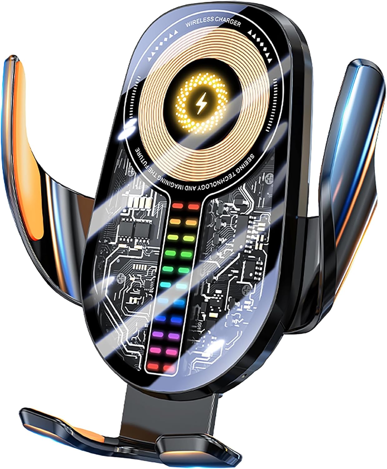 - Voice-Activated Lighting: RGB voice-controlled lighting enhances ambiance in this premium Car Phone Holder and Charger, featuring sound-responsive LEDs within its sleek, low-profile build that integrates with any car interior.